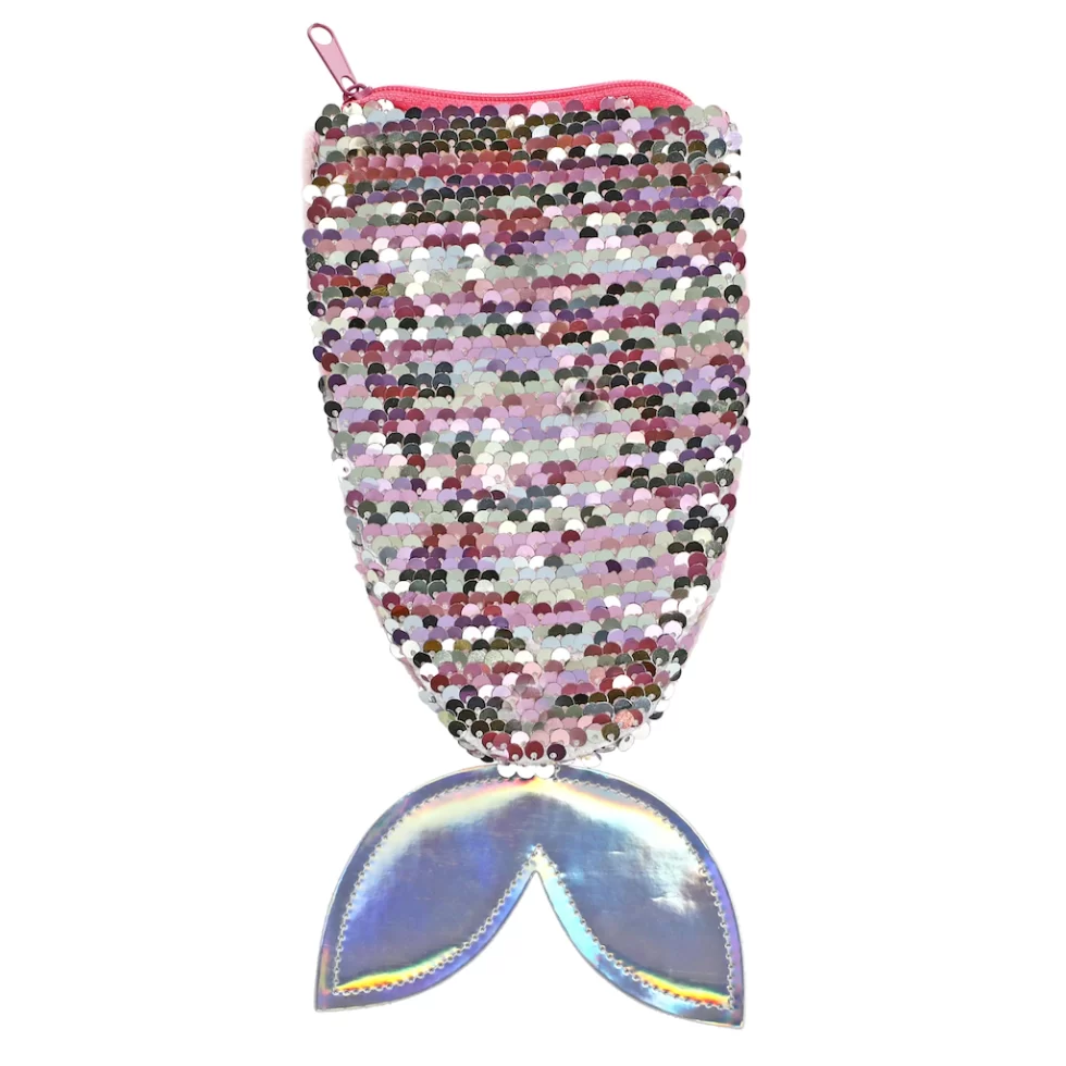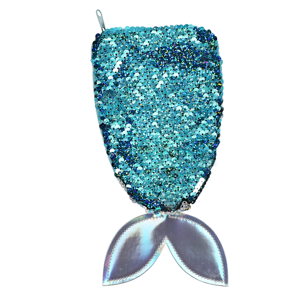 Jot Sequined Mermaid Tail-Shaped Pencil Bags, 9×4.25 in.
