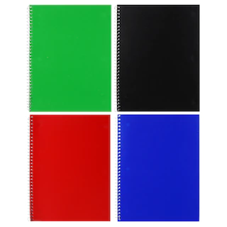 Assortment Details: 70-pg. Jot™ Wide-Ruled Poly-Cover Spiral Notebooks assorted among red, green, blue, and black