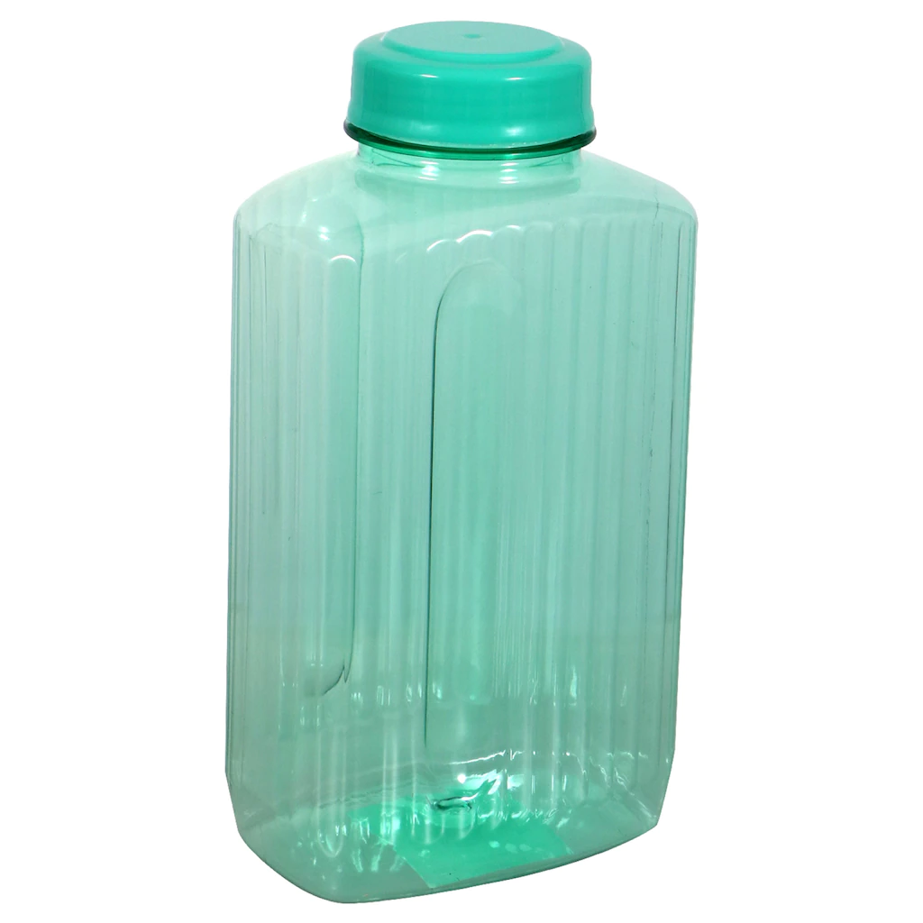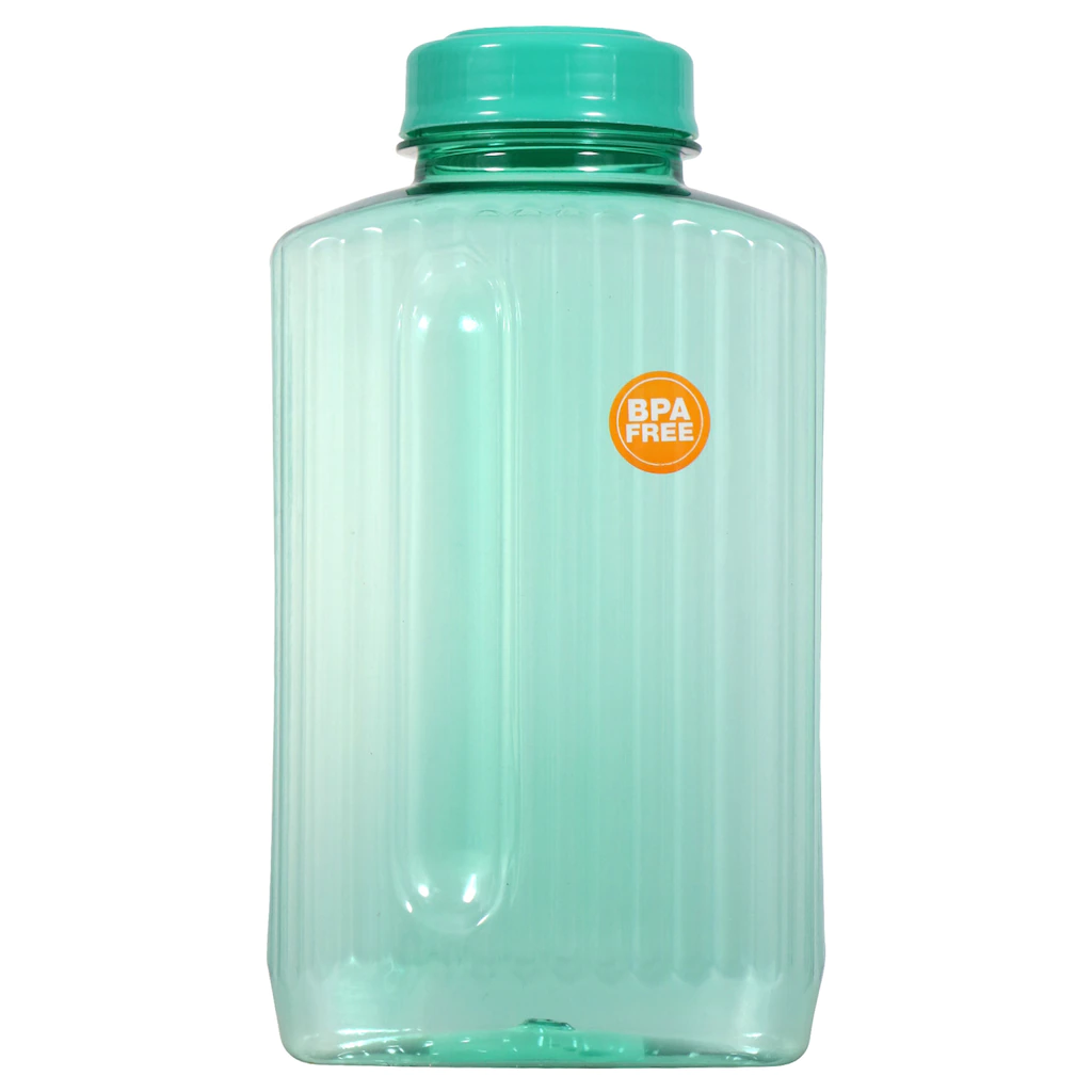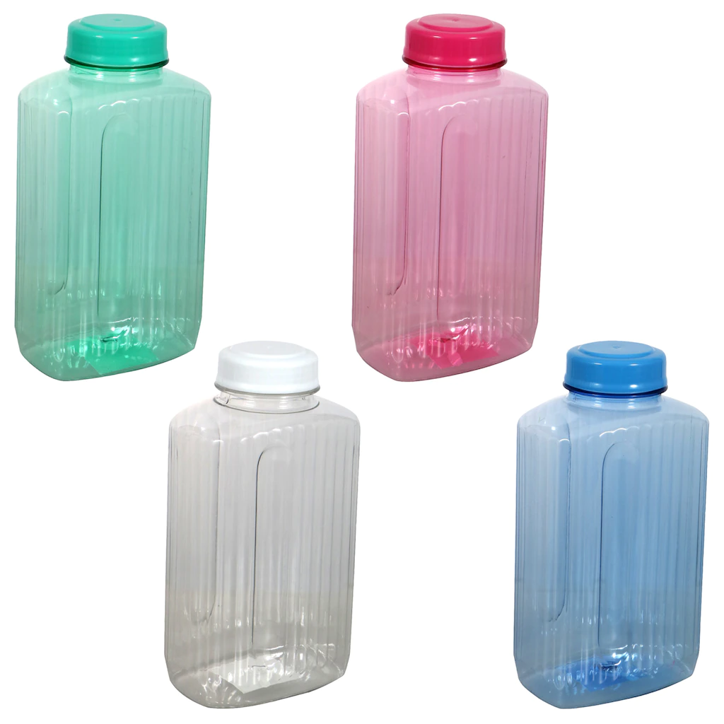 Assortment Details: 54-fl.oz. Jumbo Plastic Water Bottles with Screw-On Lids evenly assorted among aqua blue, blue, clear, and pink. Assortment may vary.