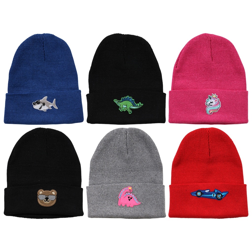 Assortment Details: Kids’ Polyester Knit Hats assorted among the 6 styles shown