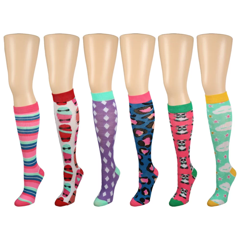 Assortment Details: Juncture™ Ladies Fashion Knee High Socks assorted among six fashion colors and patterns.