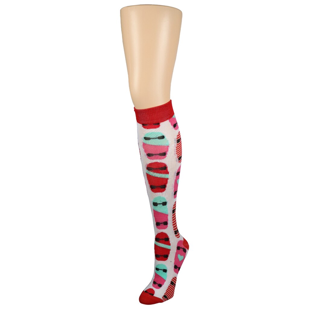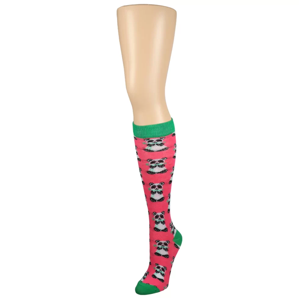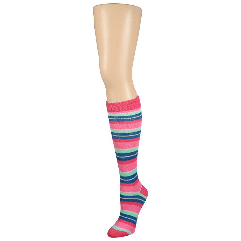 These fun and funky ladies fashion knee high socks add fun to every day dressing. Reinforced toes coordinate with the fun colors and patterns for each of the socks. These socks fit ladies shoe sizes 5 through 9. They make excellent stocking stuffers and superb additions to care packages.