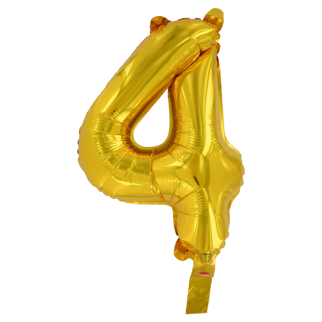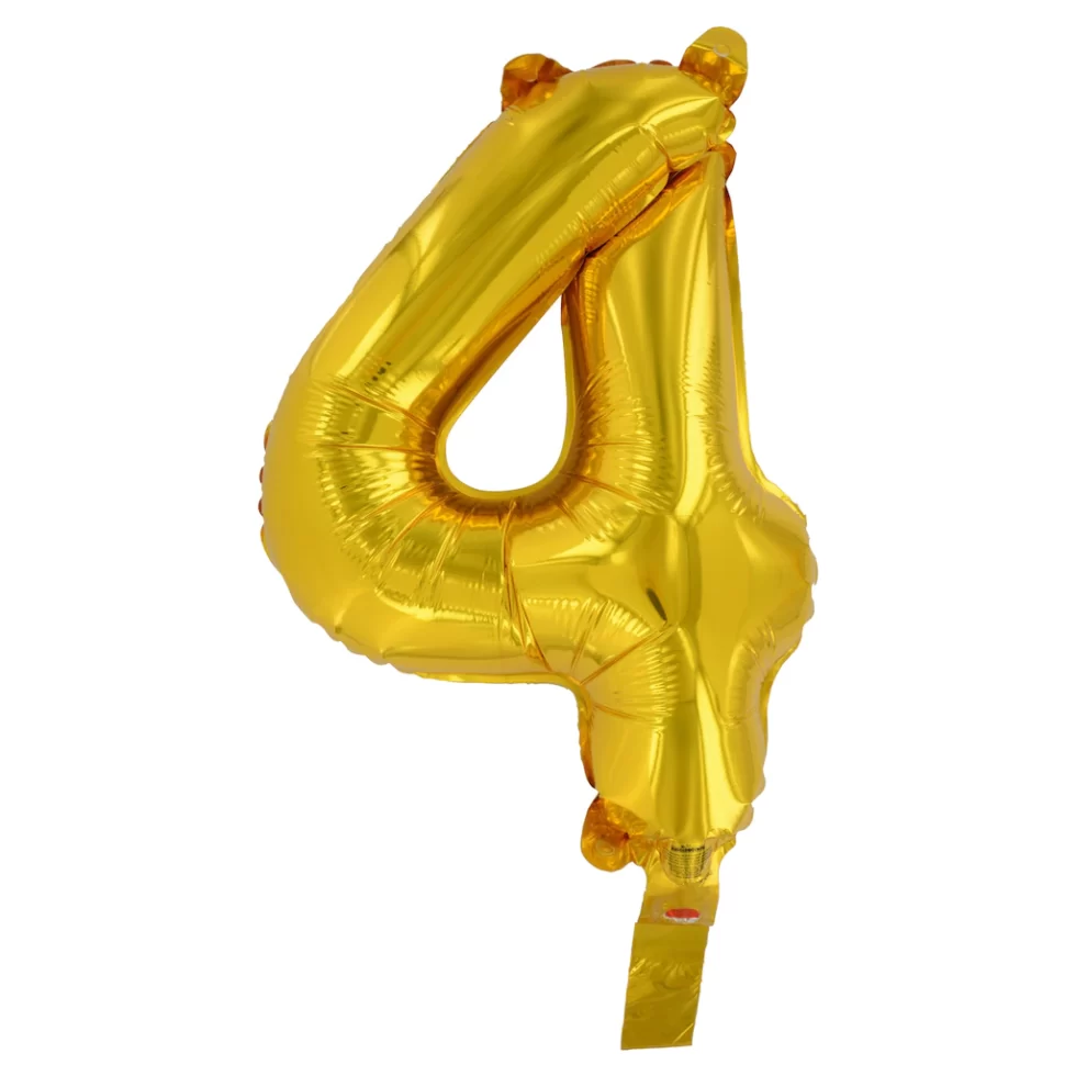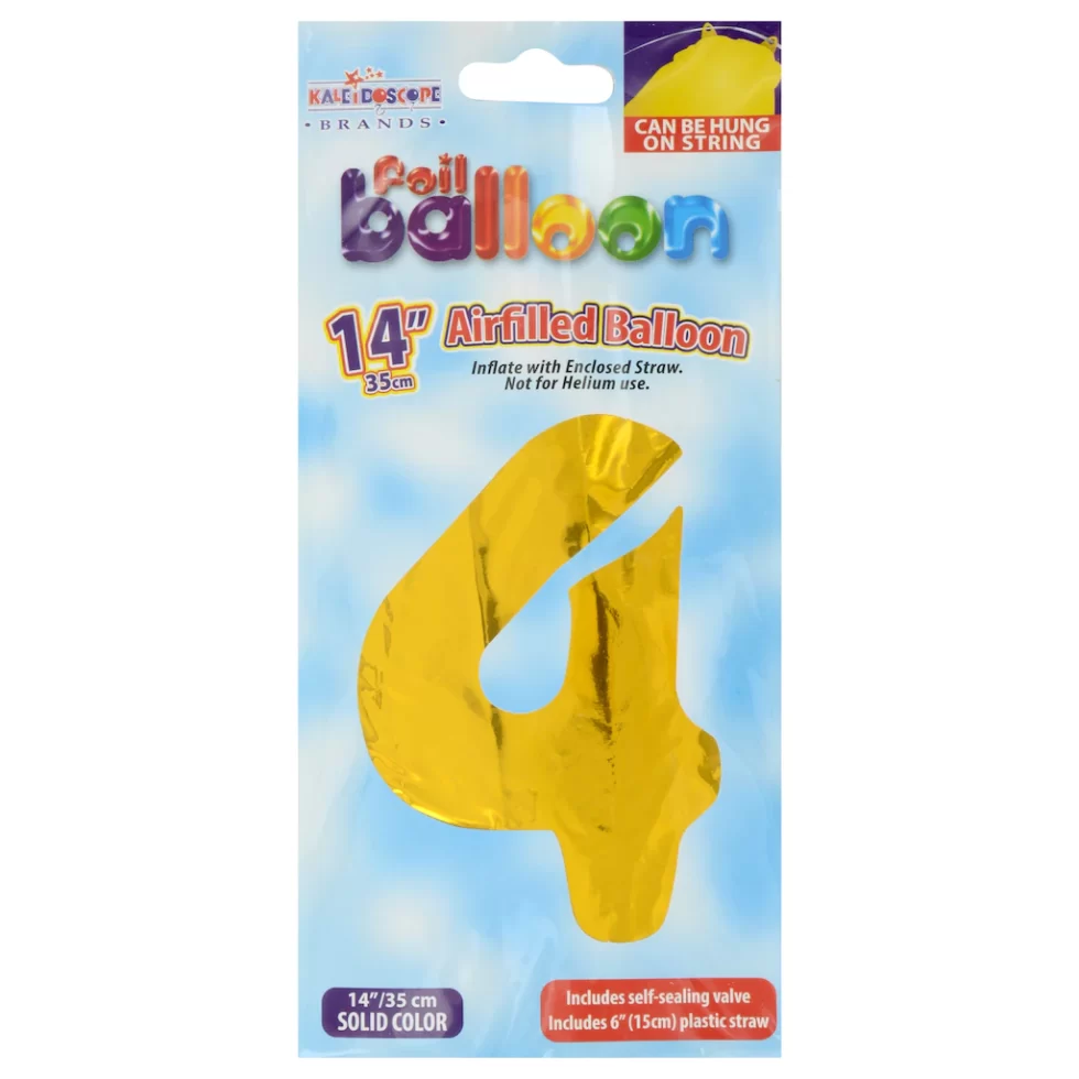 Four has never looked so fantastic! These 14 in. Kaleidoscope Brands® Gold Number 4 foil balloons are perfect for taking your birthday or anniversary party to next level! The brilliantly bright golden foil design will liven up your décor and instantly put your guests in celebration mode! Simply use the included 6 in. plastic straws to inflate the balloons through their self-sealing valves and hang them from the ceiling or create a beautiful balloon banner. Plus, they’re great for resale at party supply stores, gift shops, and home goods stores. Not for helium use.