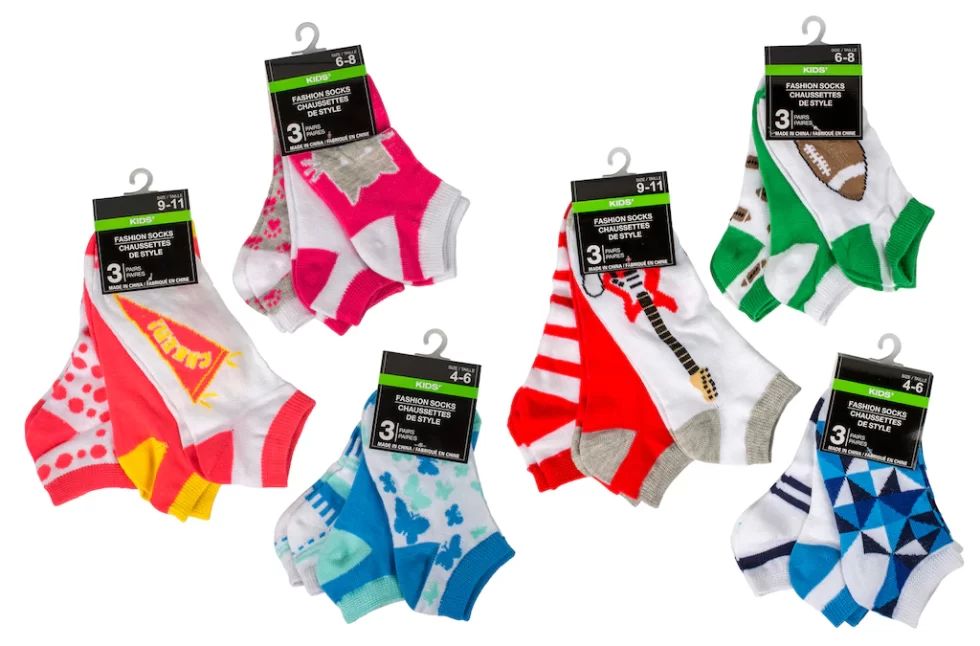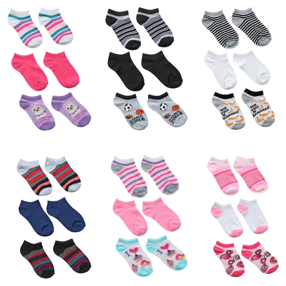 Assortment Details: 3-Pair Packs of Kids’ Bold Fashion Low Cut Socks assorted among the colors and styles shown. Assortment may vary..