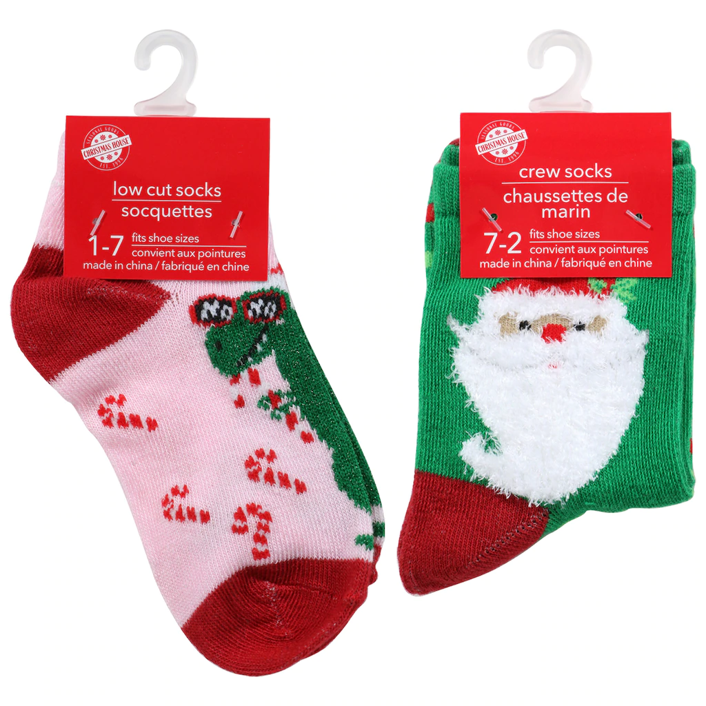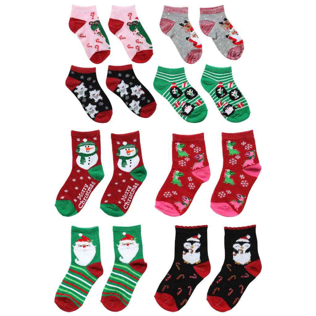 Assortment Details: Kids Crew and No Show Christmas Socks assorted among the 12 designs shown.