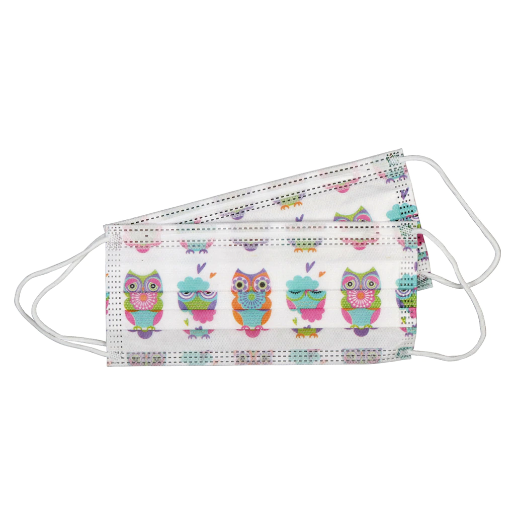 The masks have a comfortable nose bridge and ear loops. The even come printed with little owls to help your child feel excited to wear the mask. Great for doctor’s offices, school clinics, kids camps, and more.