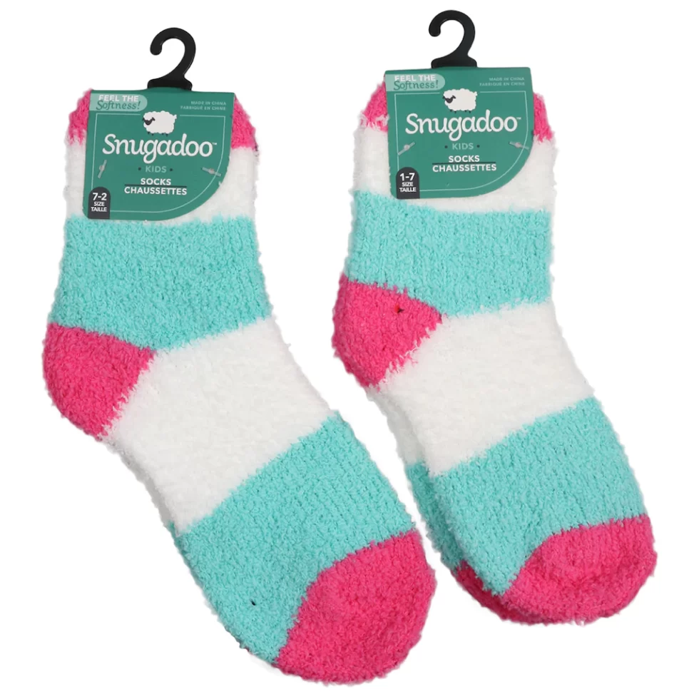 Assortment Details: Kid’s Snugadoo Fuzzy Socks unevenly assorted among the 6 designs shown