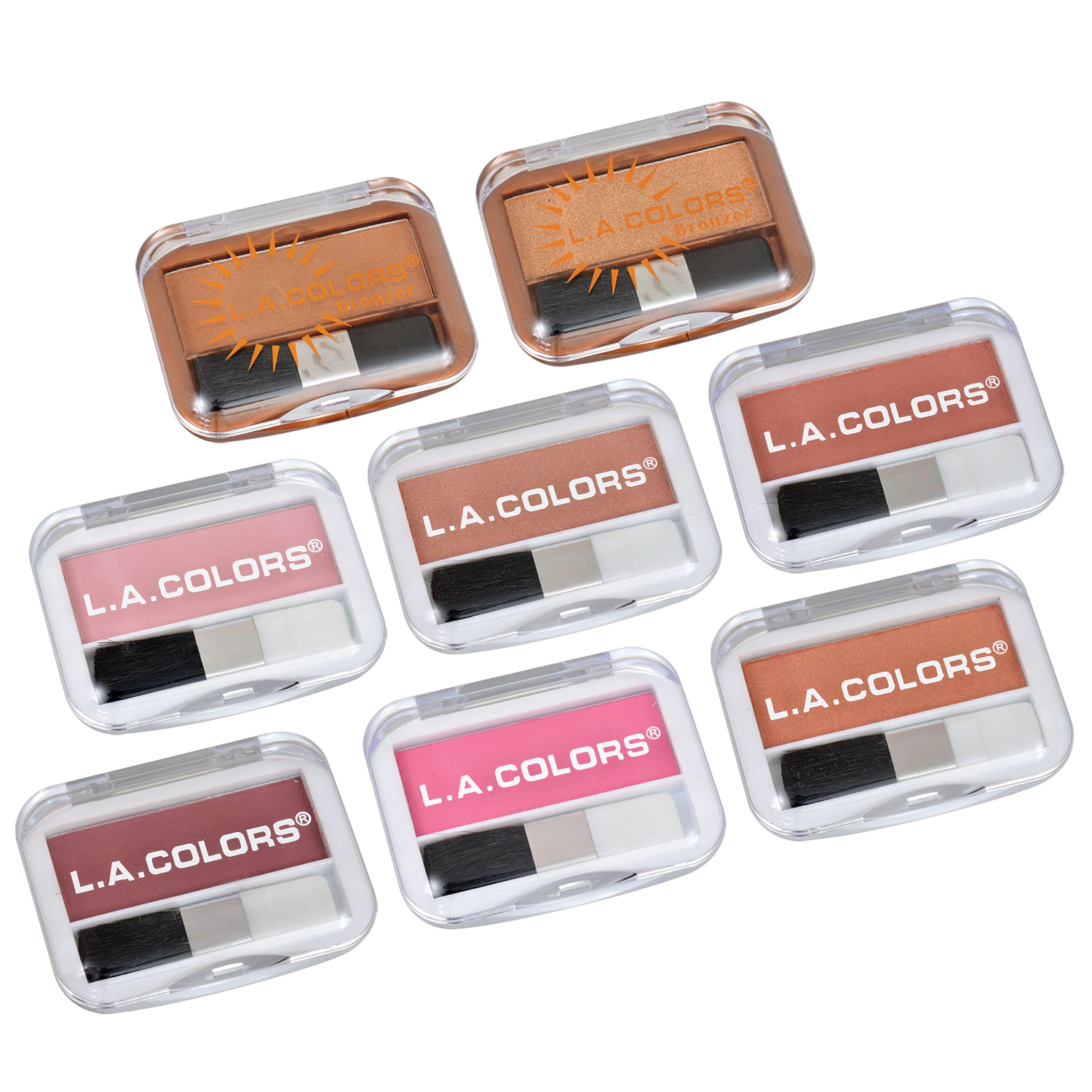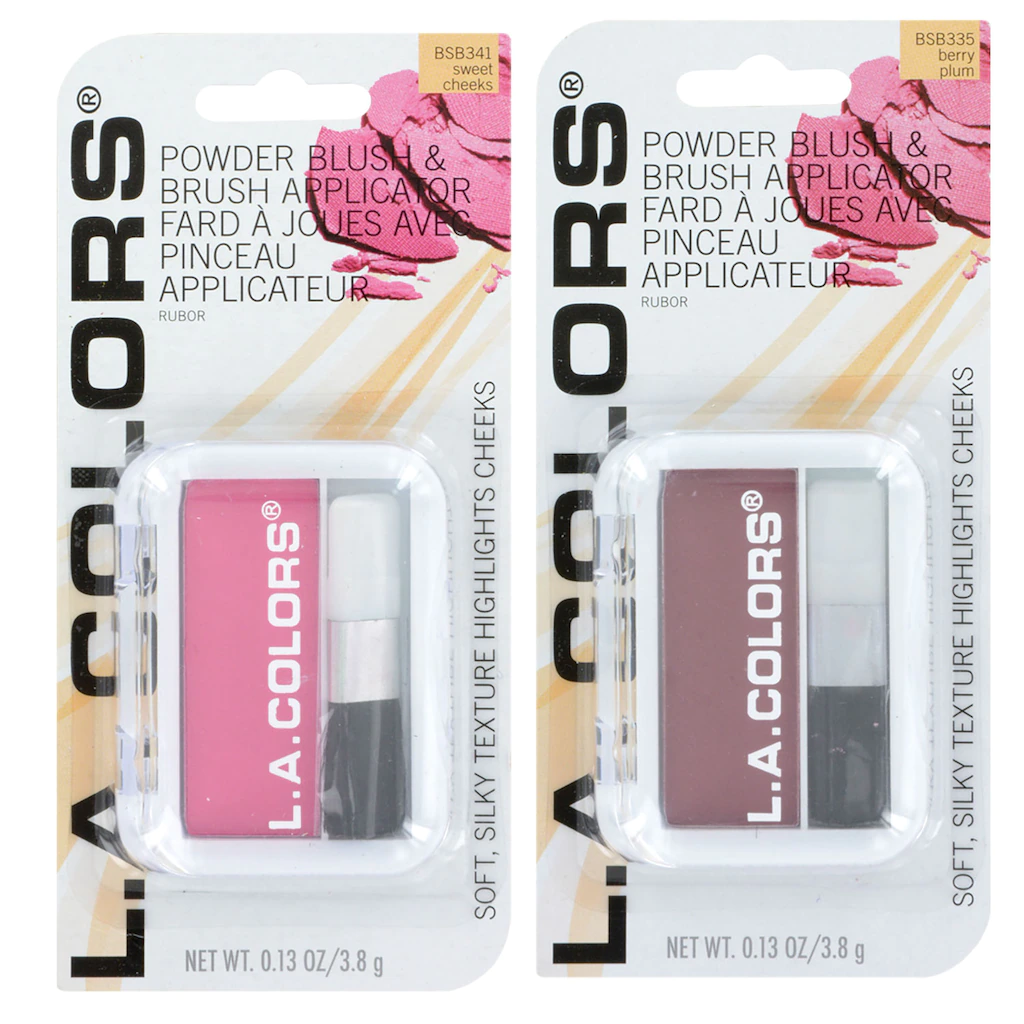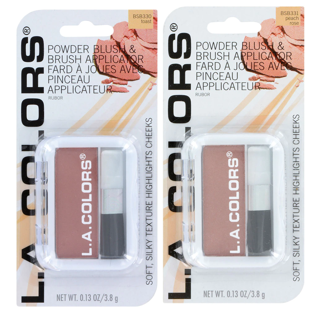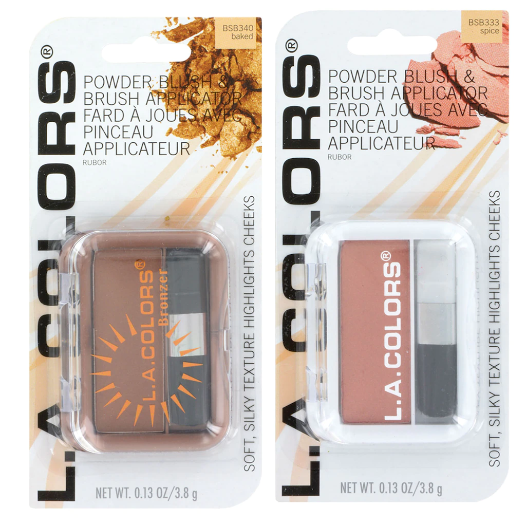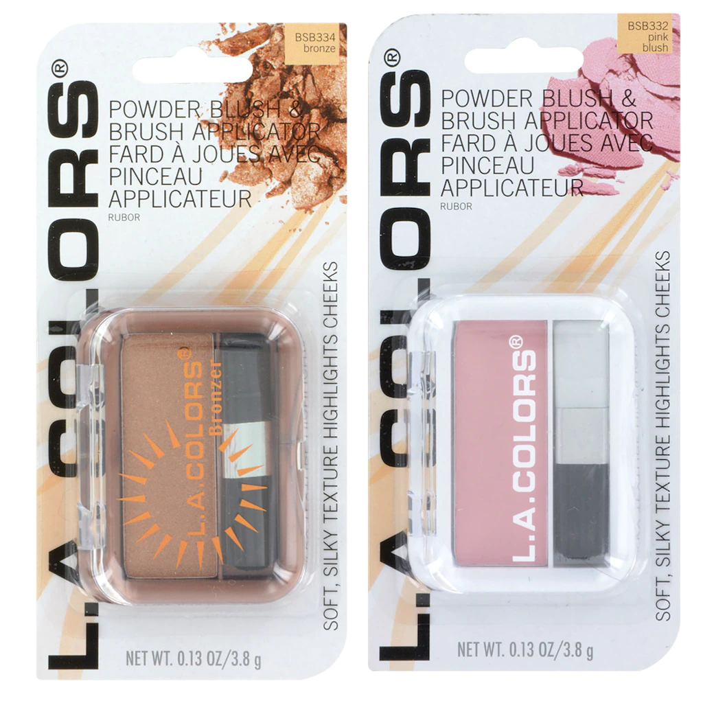 Assortment Details: L.A. Colors® Expressions Bronzers and Blushes assorted among Bronze Bronzer, Baked Bronzer, Toast, Sweet Cheeks, Peach Rose, Spice, Pink Blush, and Berry Plum blushes