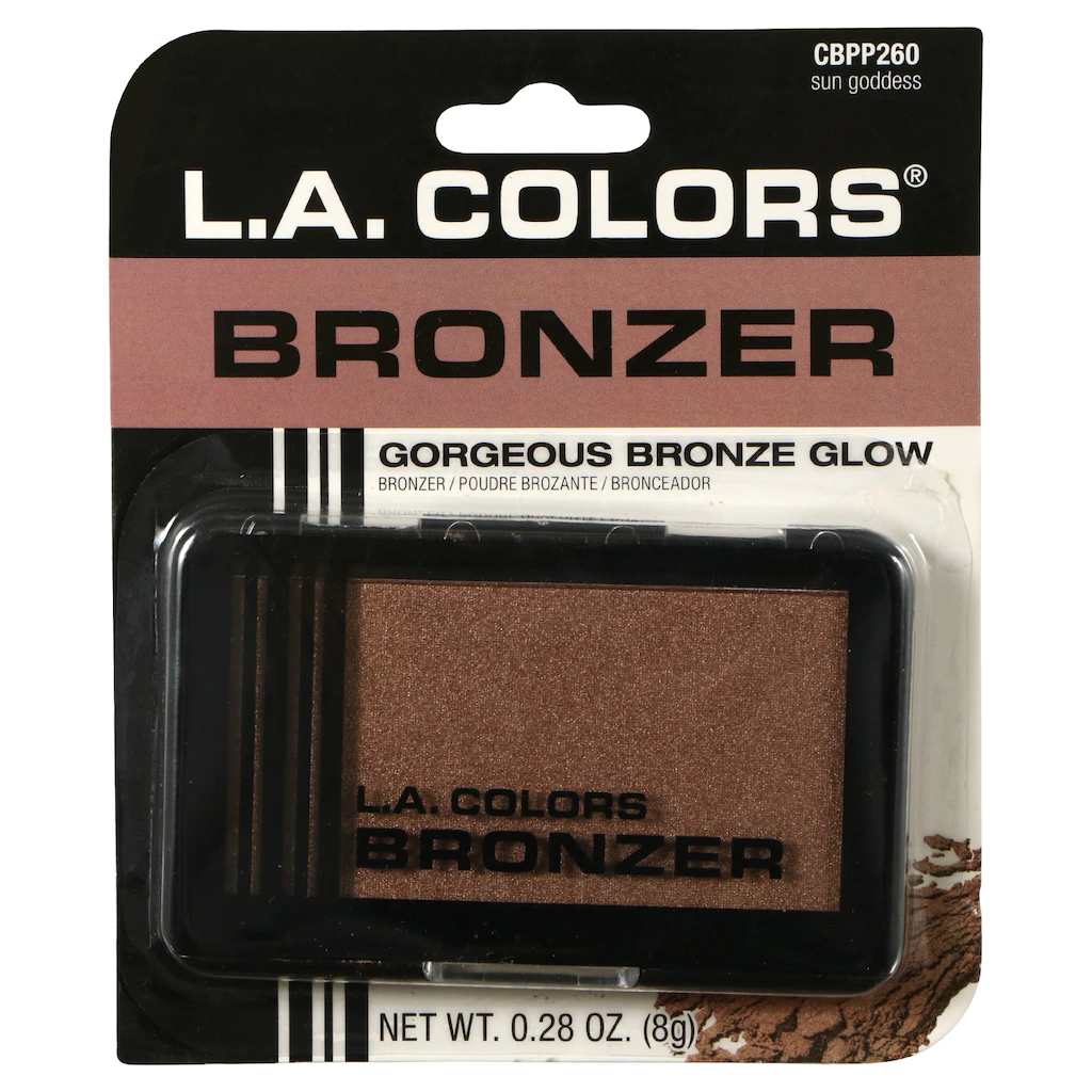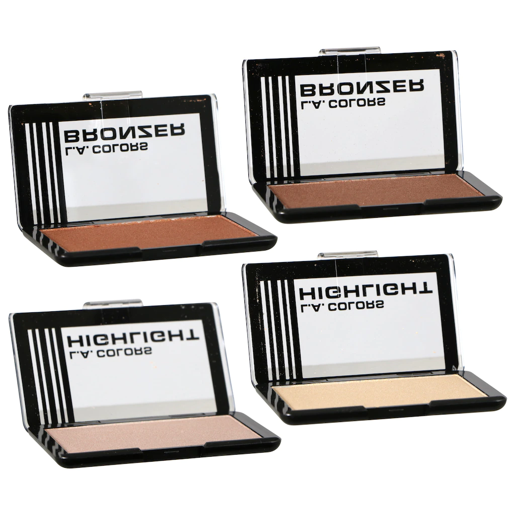 Assortment Details: L.A. Colors® Highlighter and Bronzer assorted among glow time, bronzed beauty, shine bright, and sun goddess.