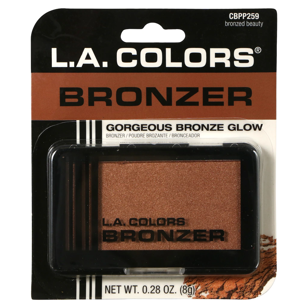 Assortment Details: L.A. Colors® Highlighter and Bronzer assorted among glow time, bronzed beauty, shine bright, and sun goddess.