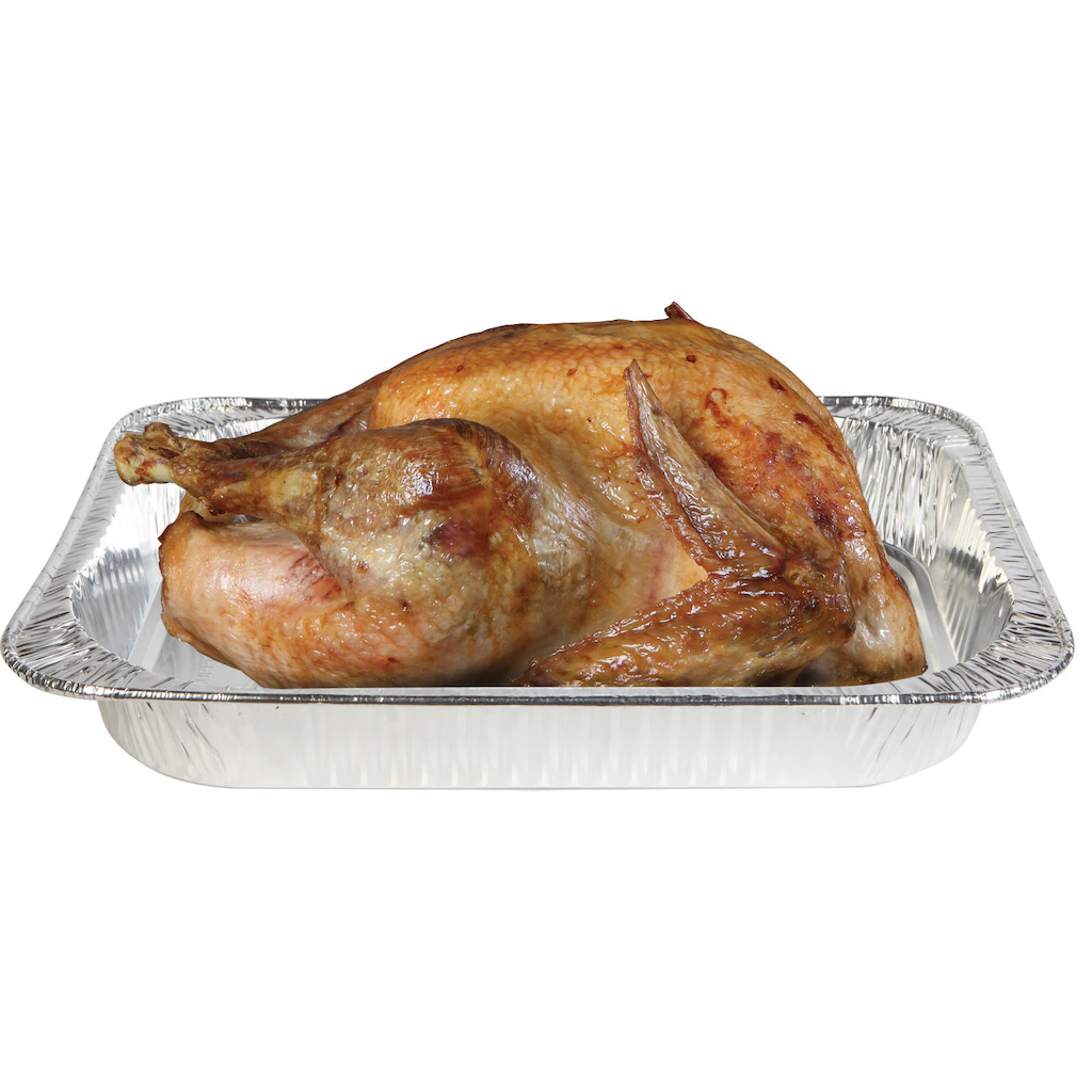 Spend more time celebrating and less time cleaning up! Disposable foil rectangular roaster is the perfect size for turkeys, hams, lasagnas, and any number of other entrées, casseroles, or sides. A must-have for banquets, catered events, and large family gatherings.