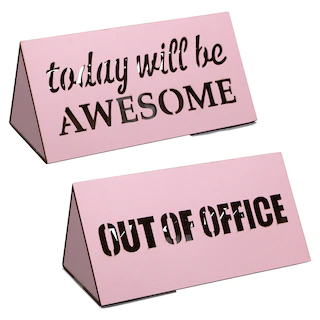 These LED Desk Wood Signs, with yellow lights that are operated with an on/off switch, add personality to any desk. The lights are powered with 3XLR44 batteries that are included. They are assorted among “Today Will Be Awesome,” “Chasing Unicorns,” “Pretending to Work,” “Back in 10 Minutes,” “But First Coffee, ” and “Out of Office.” These bring fun to any office and make great gifts and stockiing stuffers.