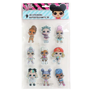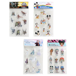 Assortment Details: Licensed Character 3D Stickers assorted among Jurassic World®, Disney® Princesses, LOL! Surprise™, Disney® Mickey Mouse
