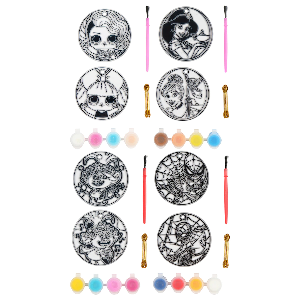 Allow natural sunlight to filter into your space; making the room shine with an array of colors. You can choose the colors for each suncatcher! Paint away with the assortment of colors included and creat your suncatcher masterpiece! They come assorted among Disney® Princesses, LOL Surprise!™, Marvel® Spider-Man®, and Dreamworks™ Trolls™. Excellent for schools, home, art classes, gift giving, and more. Assortment may vary.
