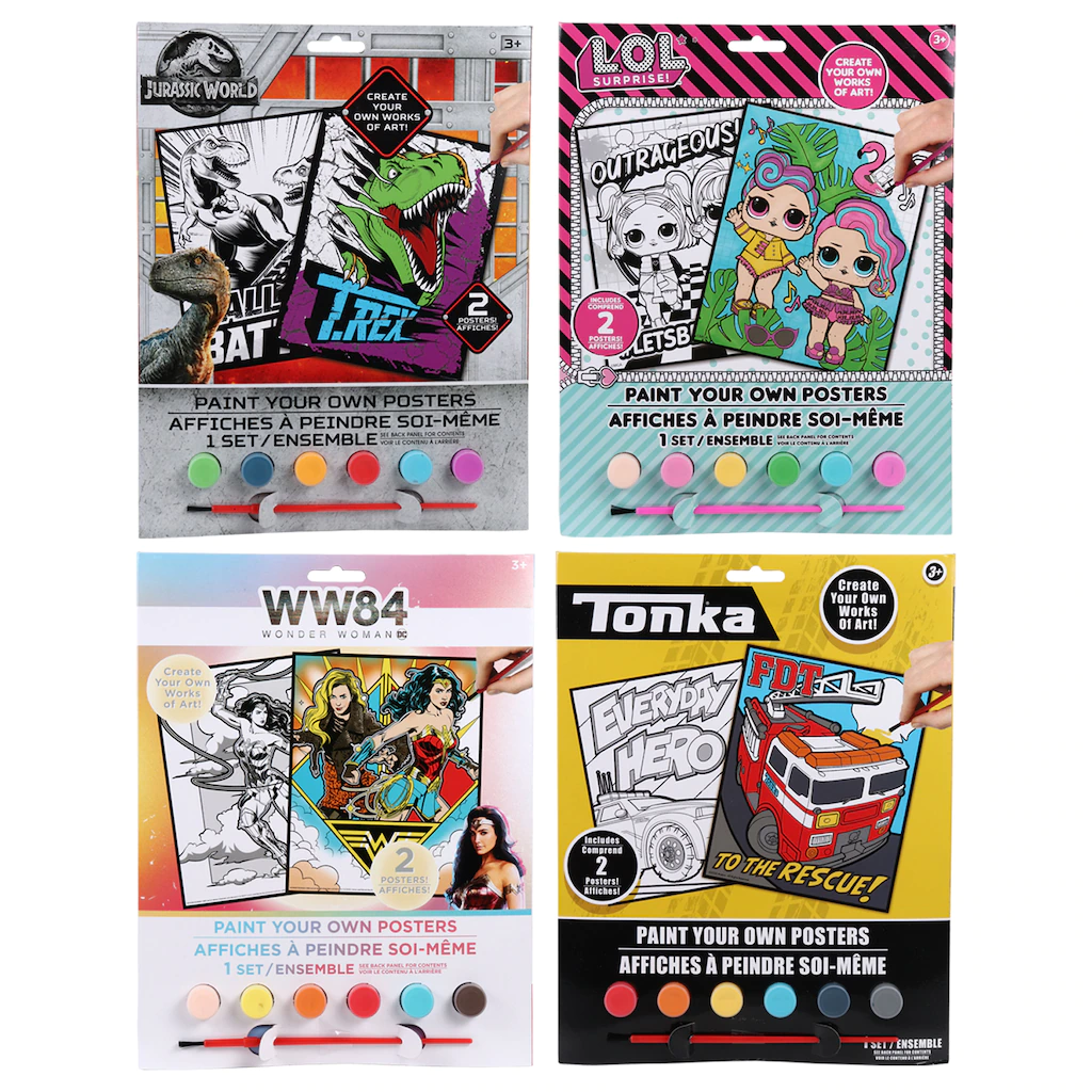 Assortment Details: Licensed Character Poster Paint Sets assorted among Jurassic World®, LOL Surprise!™, DC Comics® Wonder Woman™, and Tonka®. Assortment may vary.