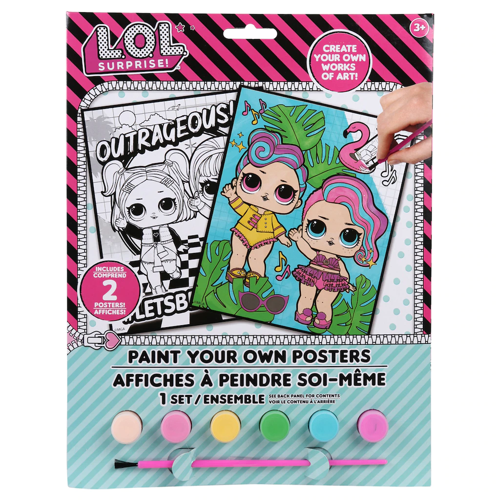 A great rainy-day art project with all the kids? favorite cartoon friends! Each set includes two 8×10-in. posters, a set of 6 water-based paints, and a paint brush. Keeps kids busy for hours, cleans up in a snap, plus they can decorate their rooms with the posters they paint! The designs are assorted among Jurassic World®, LOL Surprise!™, DC Comics® Wonder Woman™, and Tonka®. Ages 4+. Assortment may vary.