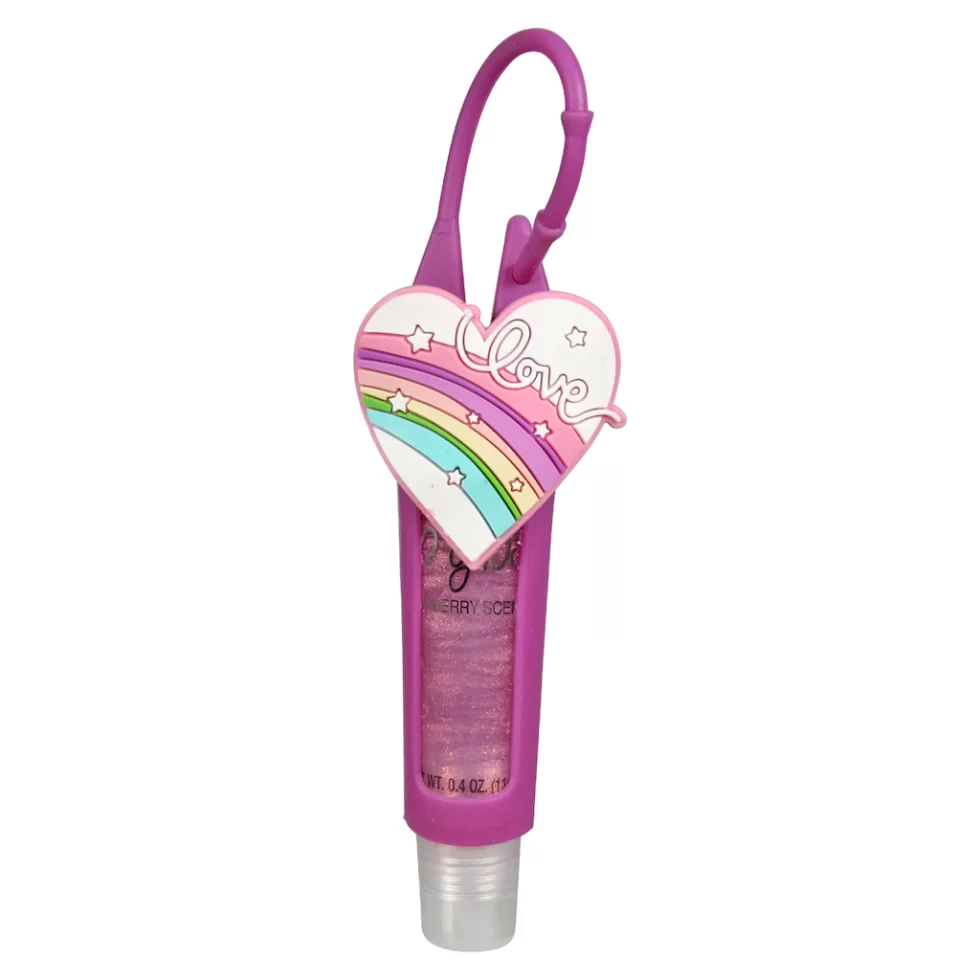 Attach these fabulous lip glosses to your purse or backpack! Each 0.4-oz. tube of lip gloss has its own silicone holder and comes in one of four styles and scents — cherry-scented with a pink unicorn silicone holder, vanilla-scented with a blue pineapple silicone holder, strawberry-scented with a purple heart silicone holder, and blueberry-scented with an aqua panda watermelon silicone holder. Perfect for gifting, adding to goody bags, including in prize boxes, and more!