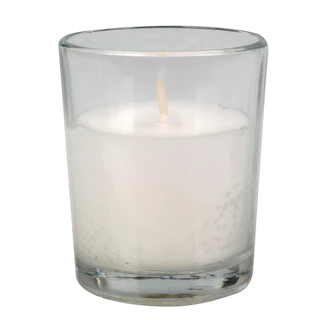 Glass holder and votive candle in one convenient package! Unscented white wax is poured into glass votive candleholders… the easiest and most convenient way to scatter candlelight at your next event. Plus, their neutral white color complements and décor or color scheme — perfect for banquets, parties, weddings, and more.