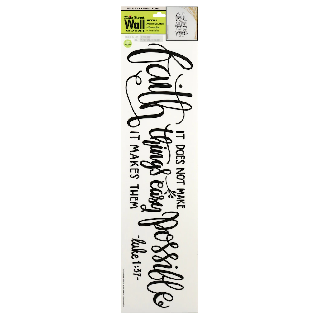 Assortment Details: 18×4.5-in. Main Street™ Wall Creations Faith: Luke 1:37 Jumbo Wall Stickers
