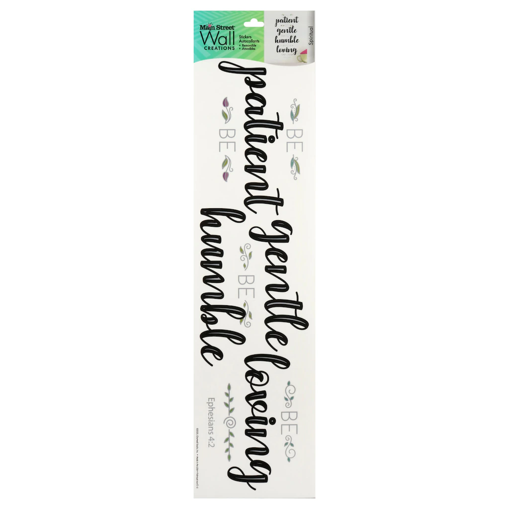Assortment Details: 15.875×4.0-in. Main Street™ Wall Creations Religious Be Patient Jumbo Wall Stickers