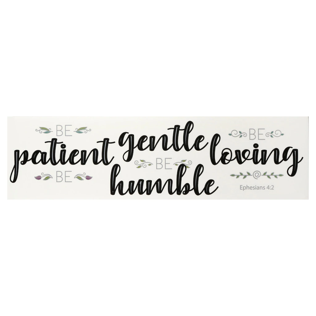 These Religious Be Patient Jumbo Wall Stickers are great additions to any space where you want to be reminded, and you want to remind others, that we should be patient, be humble, be loving, and be gentle. They look great directly on the walls, but you can also apply them to another surface that you are hanging in the space. These 15.875×4.0-in. peel and stick wall decals are removable. They are removable, are safe for walls, and are acid free. Simply apply to a clean, dry surface!