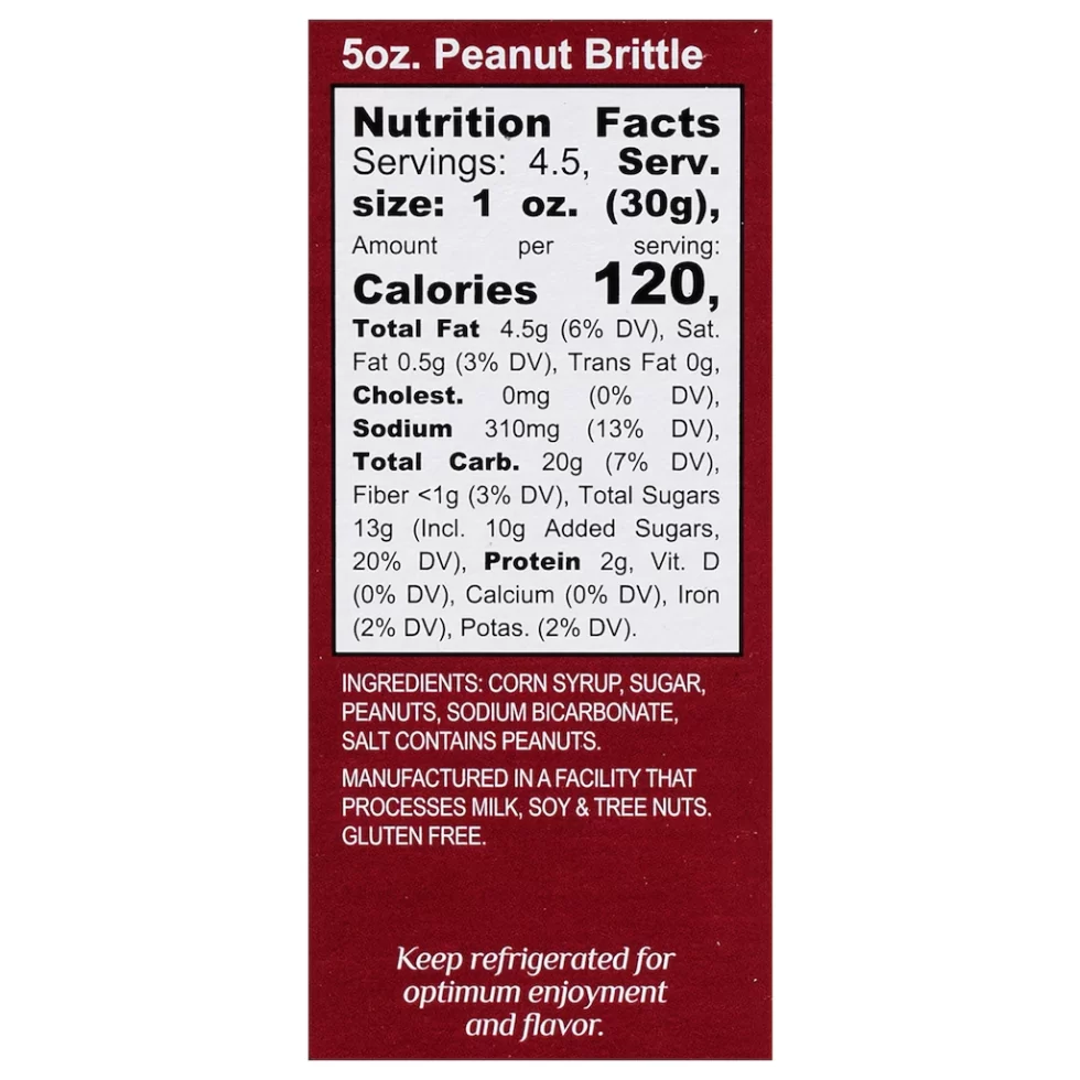 Freshly roasted gourmet peanuts in a sweet delicious crunch. Thin and crispy peanut brittle is the perfect snack for you at home, in the office, to bring to school, as a midday or midnight snack, and more! These 5-oz. boxes will easily satisfy, and the lovely flavor will allow you to feel like you’ve treated yourself. Each piece is thin and crispy, and boxes have no hydrogenated oil or artificial colors.