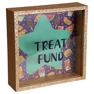 Assortment Details: 5.625×5.625 in. MDF Inspirational Glitter Money Bank assorted among 4 styles as shown. Assortment may vary.