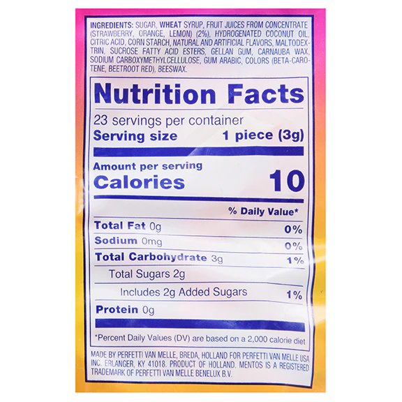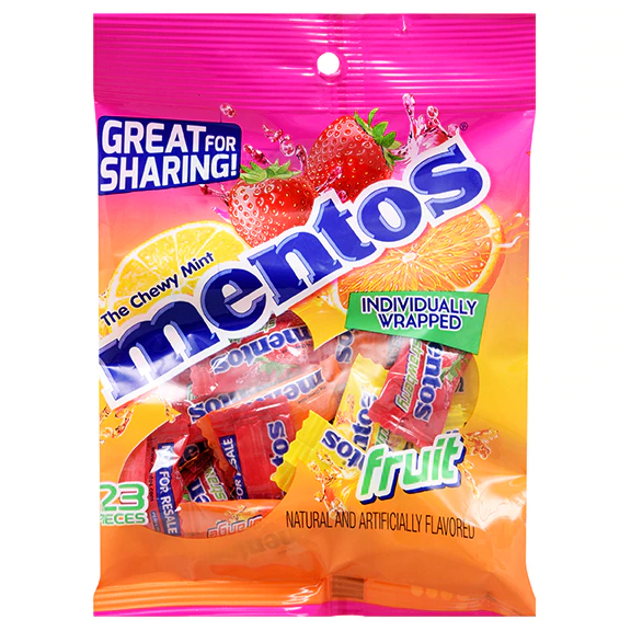 Assortment Details: 2.27 oz. Bags of Mentos Individually Wrapped Fruity Candies
