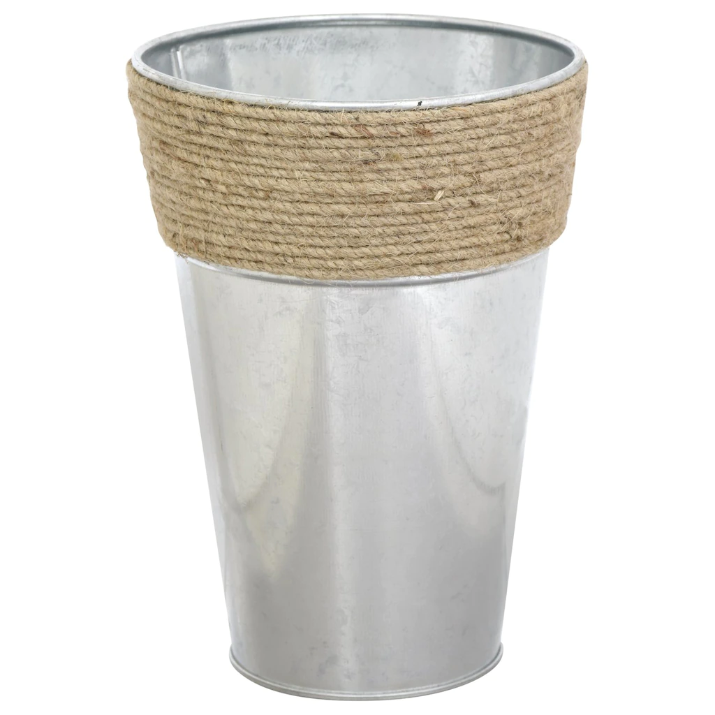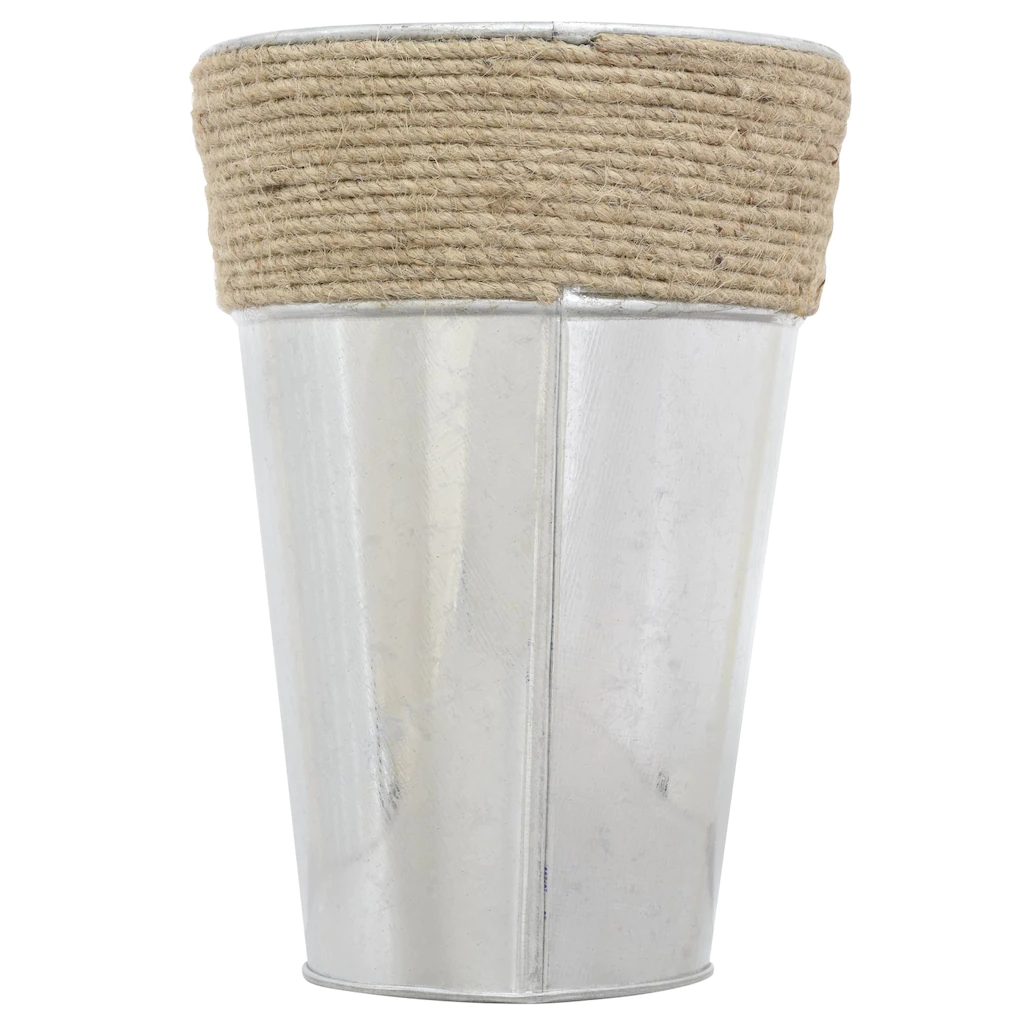 Decorative metal vases have a sturdy design and are great indoors and out! A lovely complement to all your colorful blooms, plus pretty wrapped rope details give them a touch of class. Each measures 5-in. tall, and has a 5-in. opening. Ideal for home, nurseries, garden centers, and resale. For decorative use only: not water tight.