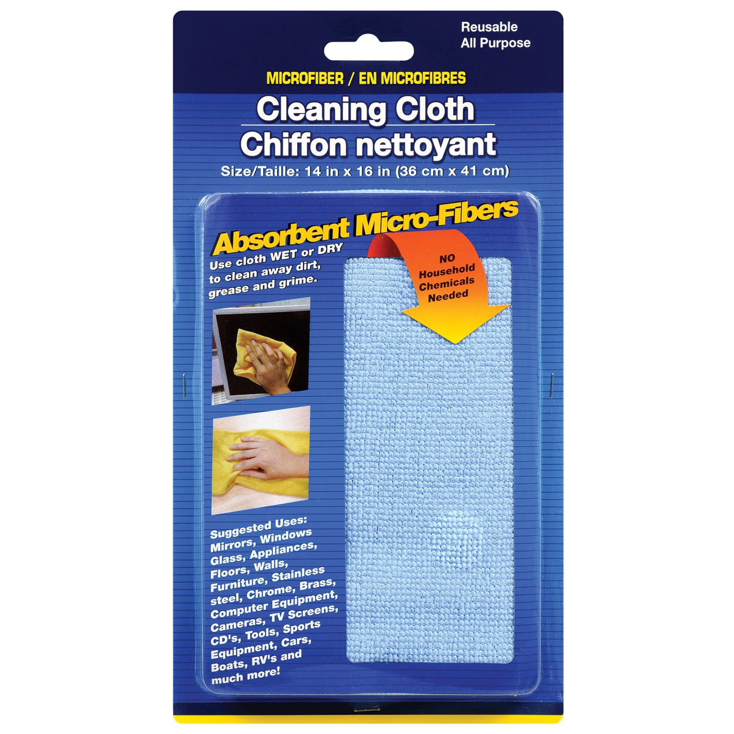 Assortment Details: 14×16-in. Microfiber Cleaning Towels assorted between blue and yellow