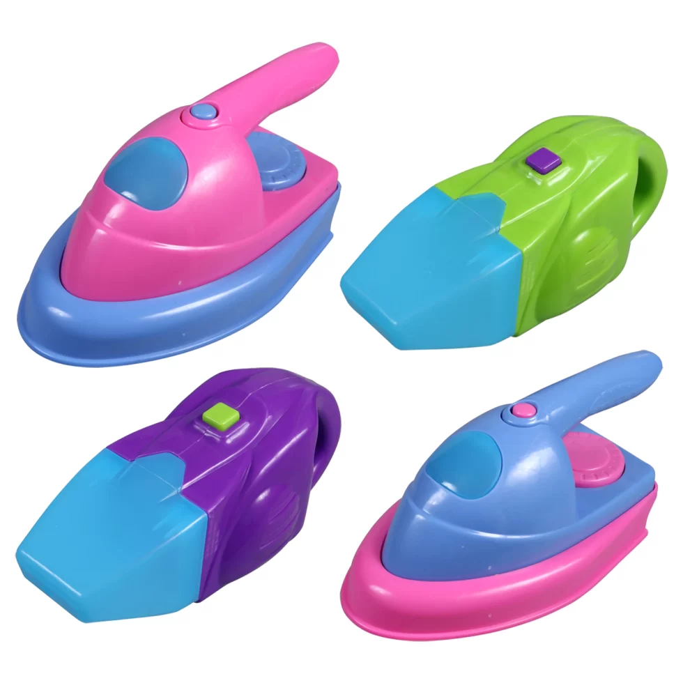These Mini Household Appliance Toys with Light and Sound are great for playing house! Assorted between two color variations of 5.5-in. irons and two color variations of 5.75-in. dust catchers, these plastic toys light up and sound like the real appliances! Each set includes one LED light and two button cell batteries. Great for daycare centers and for gifting! Ages 3+.