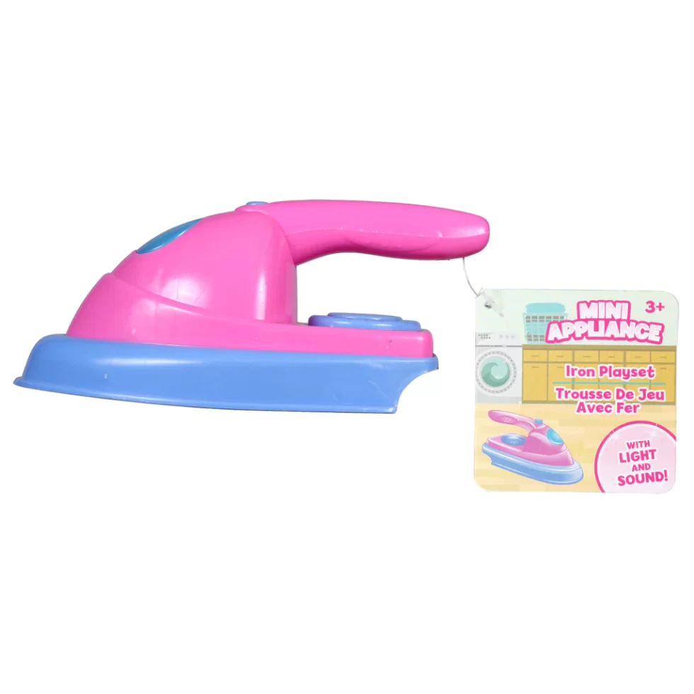Assortment Details: Mini Household Appliance Toys with Light and Sound assorted between 5.5-in. irons and 5.75-in. dust catchers in the colors shown. Ages 3+.
