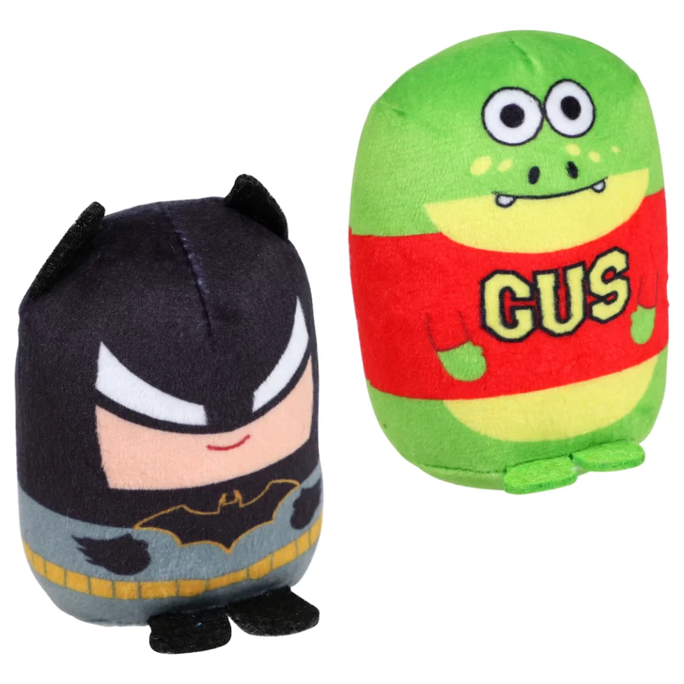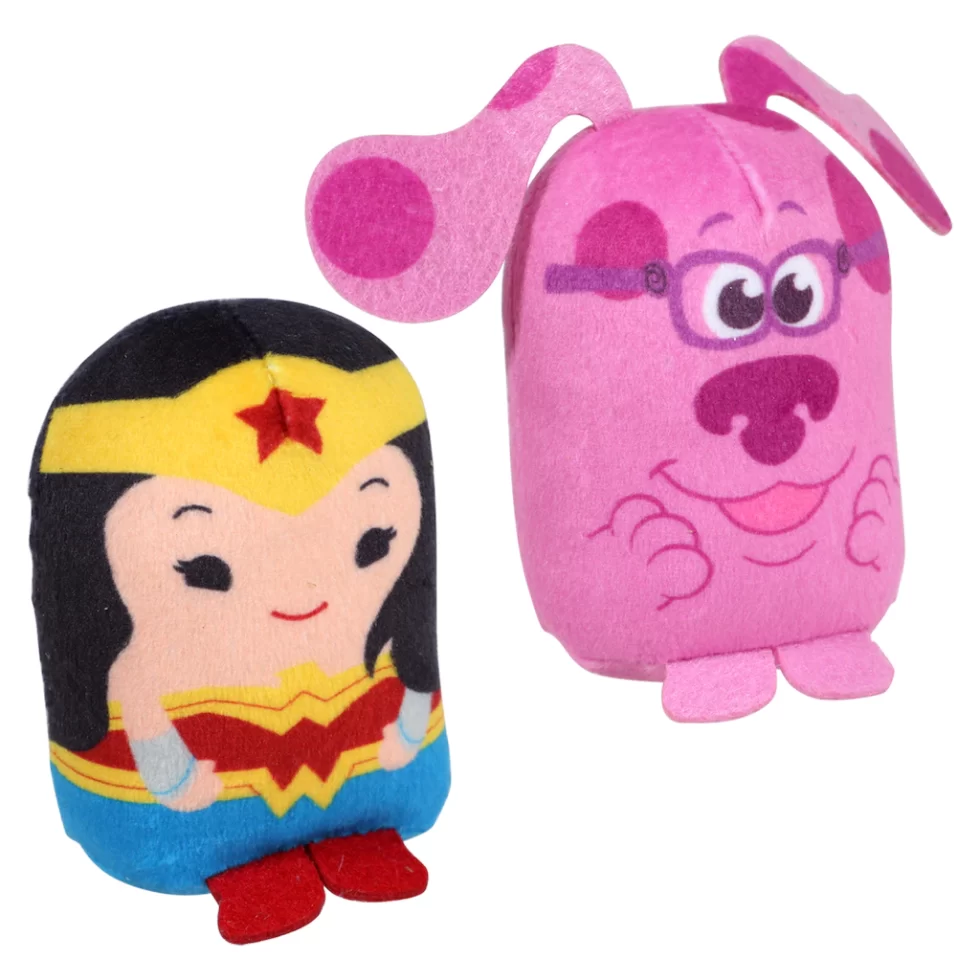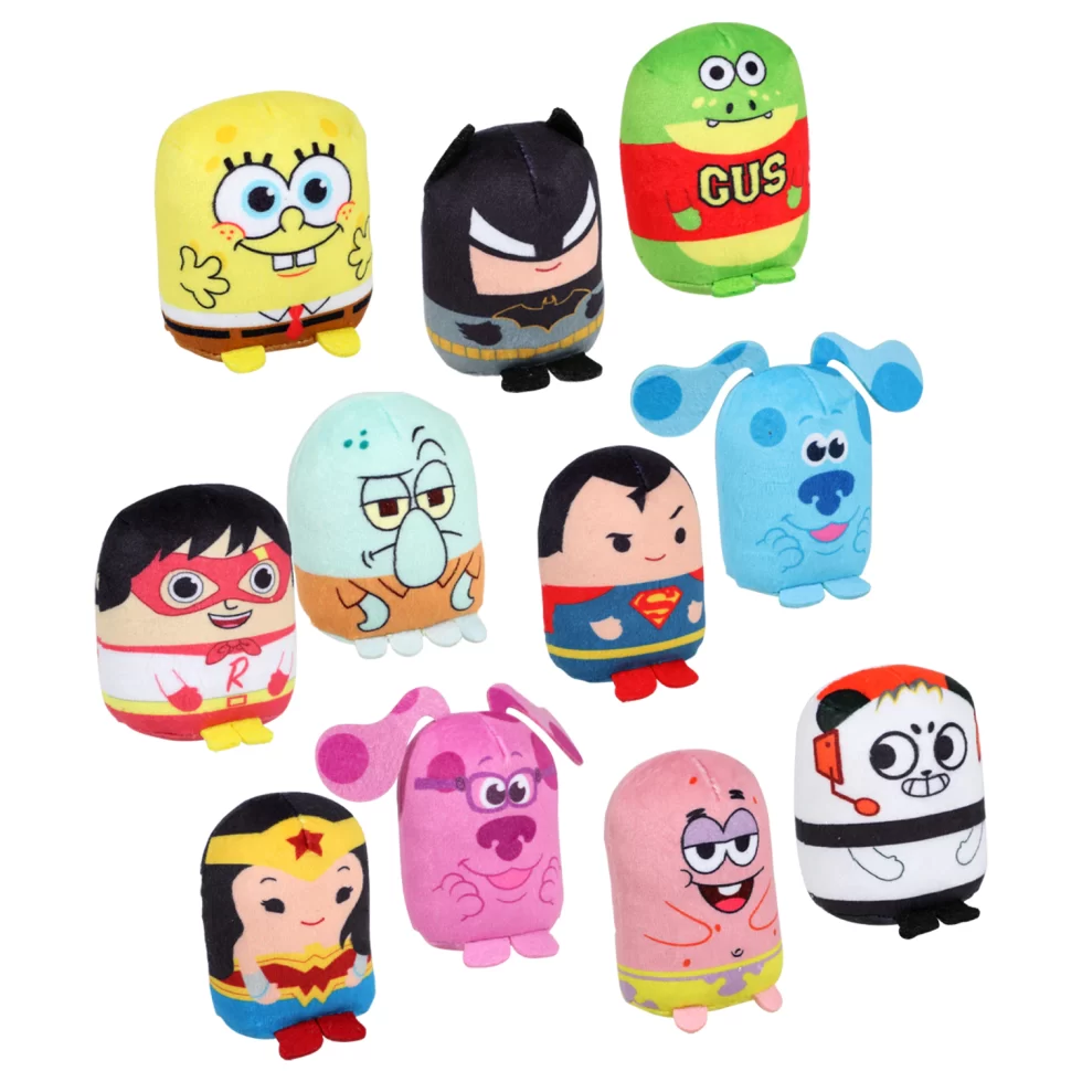 Assortment Details: Mini Stylized Value Plush Characters assorted among Nickelodeon™ Spongebob Squarepants™, DC Comics® Batman, Nickelodeon™ Squidward, DC Comics® Superman™, Nickelodeon™ Blues Clues, DC Comics® Wonder Woman™, Nickelodeon™ Patrick Star, and more.