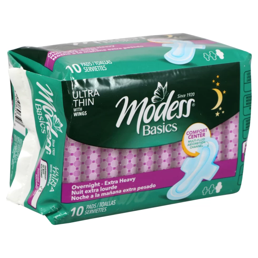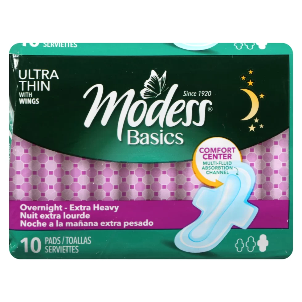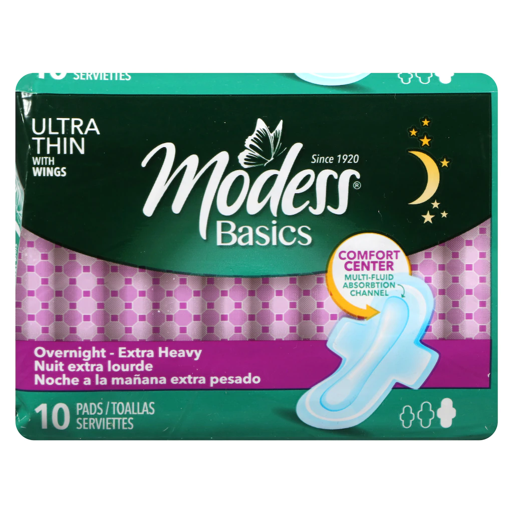 Assortment Details: 10-ct. Packs of Modess® Basics Ultra Thin Menstrual Pads