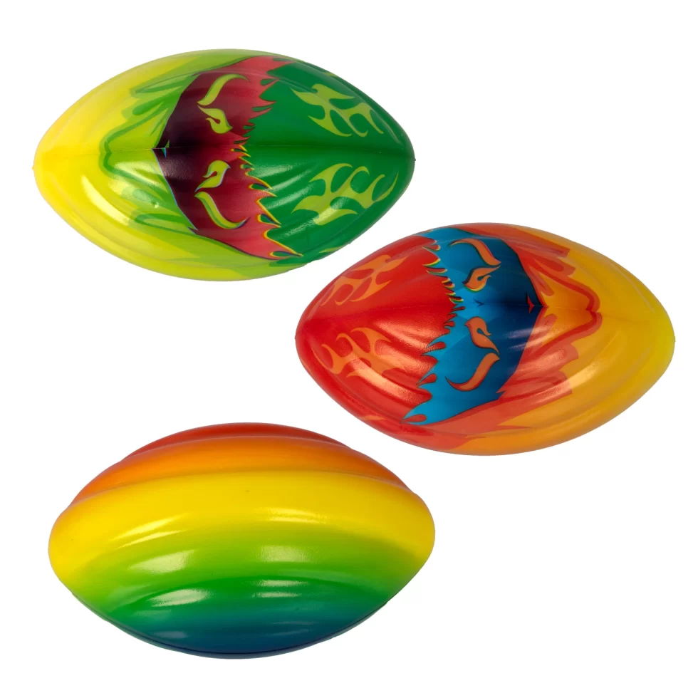 Assortment Details: 8×4.5×4.5 in. multi-colored footballs assorted among the three styles shown.