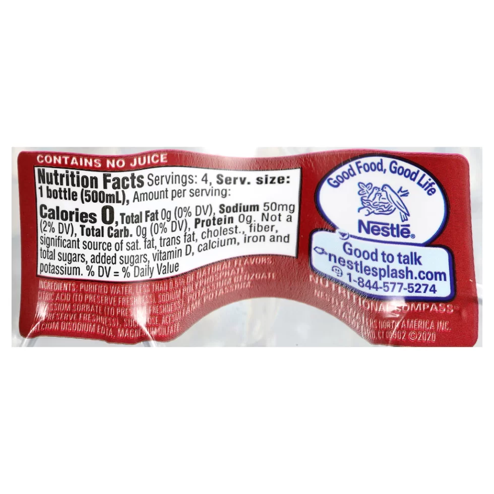Assortment Details: 4-ct. packs of 16.9-oz bottles of Nestle Spash Wild Berry Flavored Water