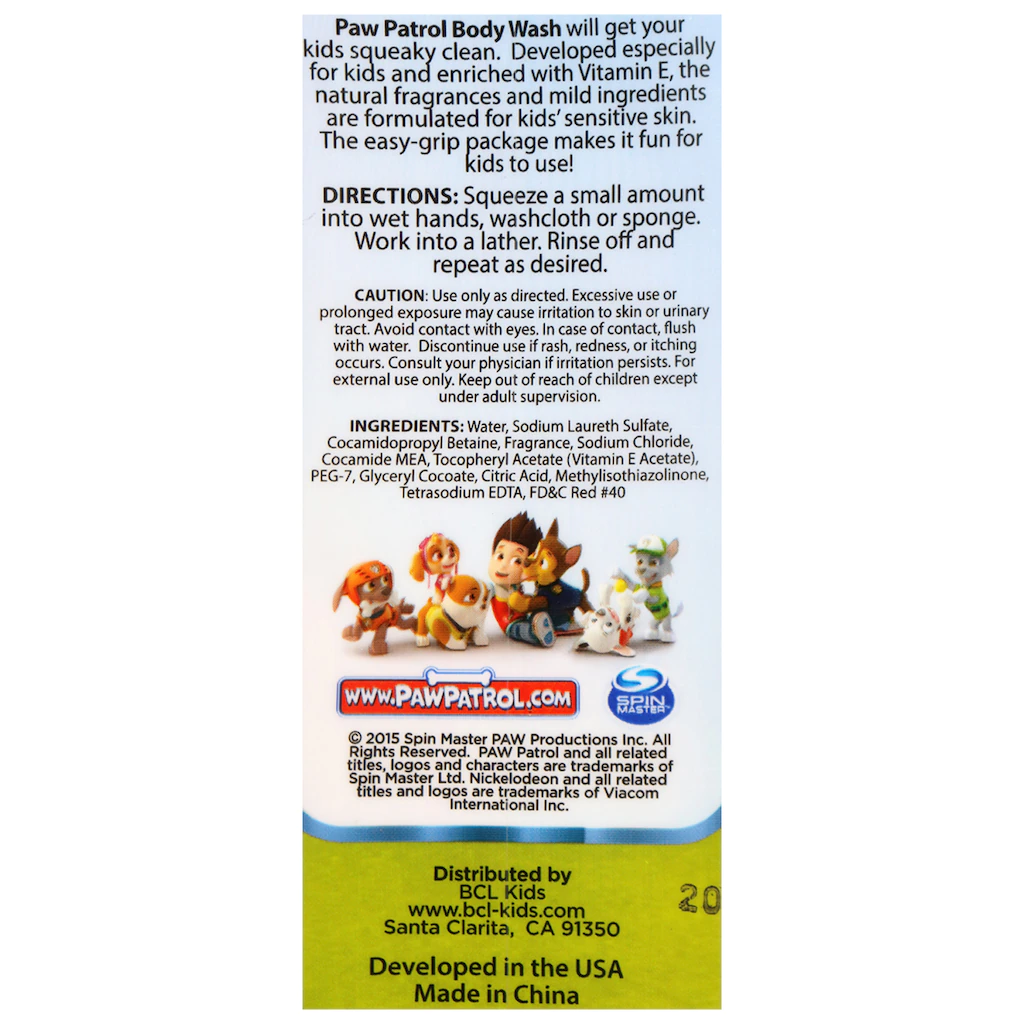 Assortment Details: 12-oz. bottles of Nickelodeon™ Paw Patrol™ Pup Pup Berry Body Wash