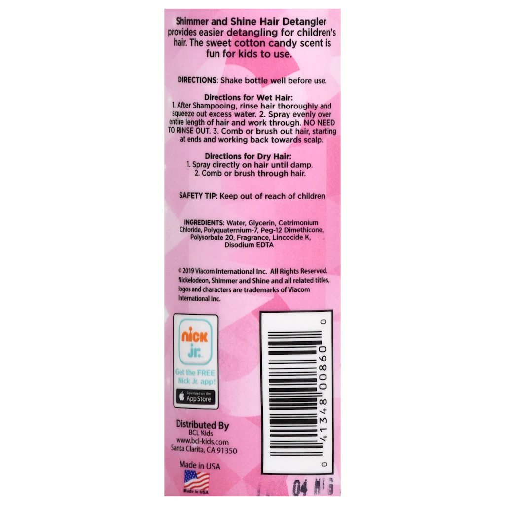 Assortment Details: 8-fl.oz. Nickelodeon™ Shimmer and Shine™ Cotton Candy Scented Hair Detangler