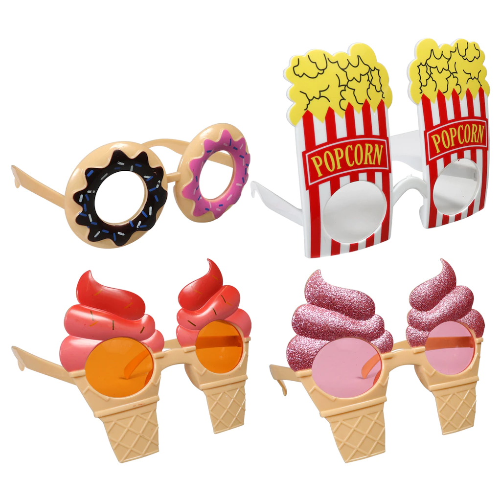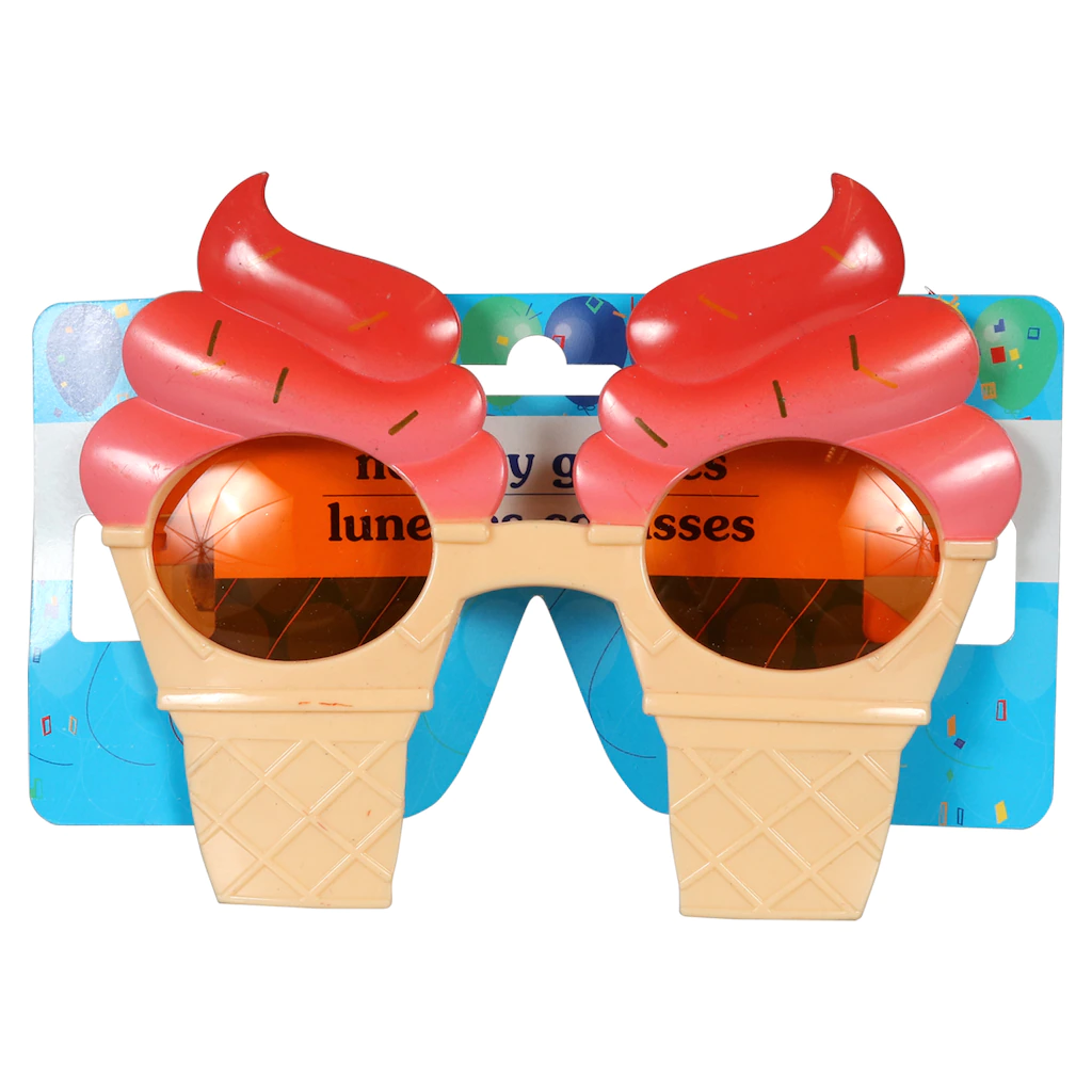 Kids will really enjoy expressing themselves with their fashion choices. These unique glasses are shaped like classic snack foods that most kids love to enjoy. The delicious shapes are assorted among donuts, popcorn, and ice cream cones in pink and orange colors. One size fits most. Ages 3+.
