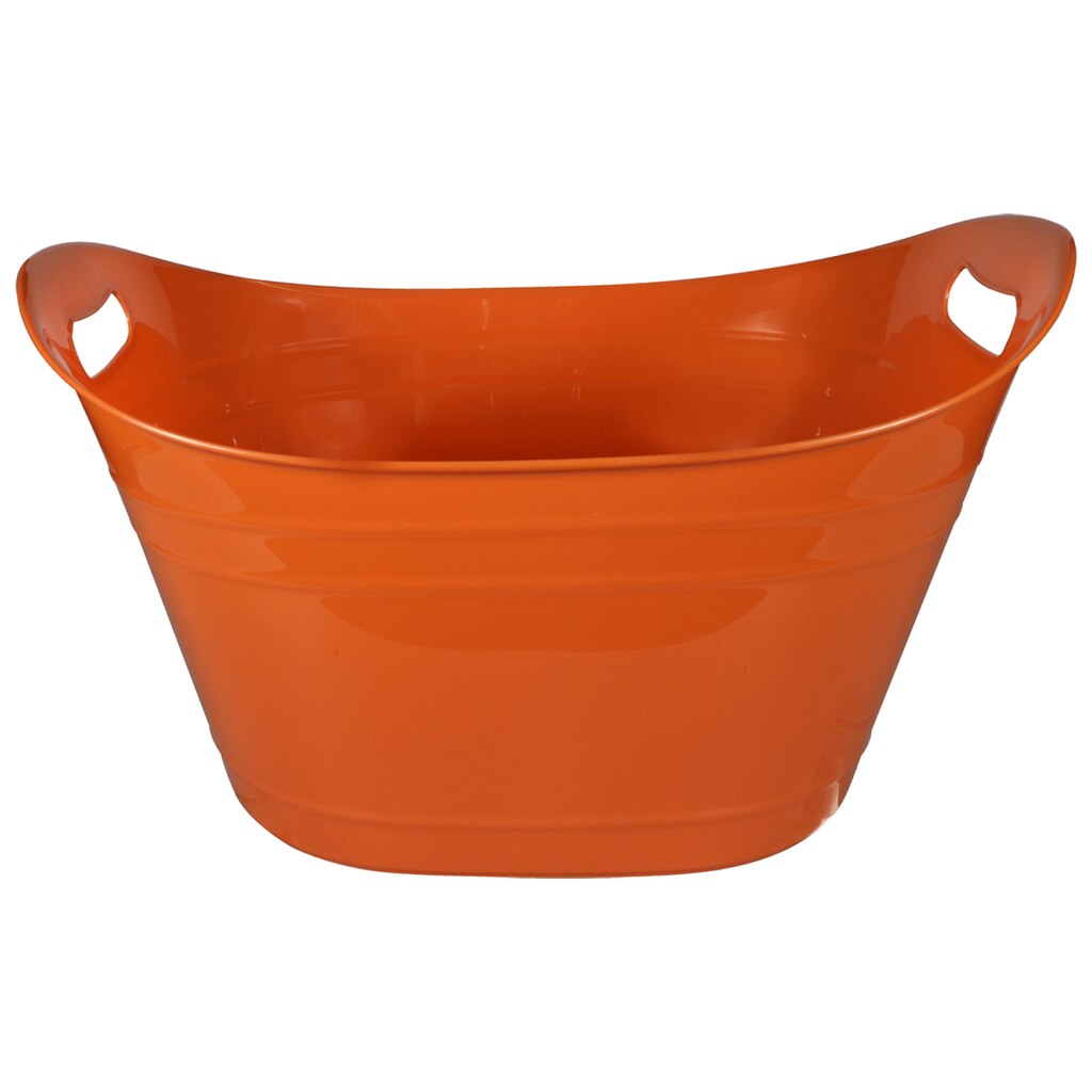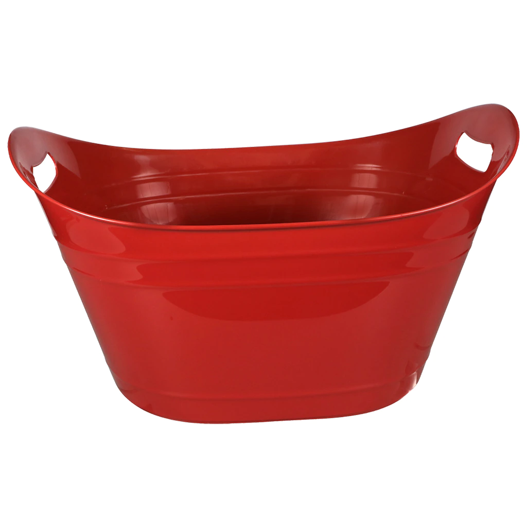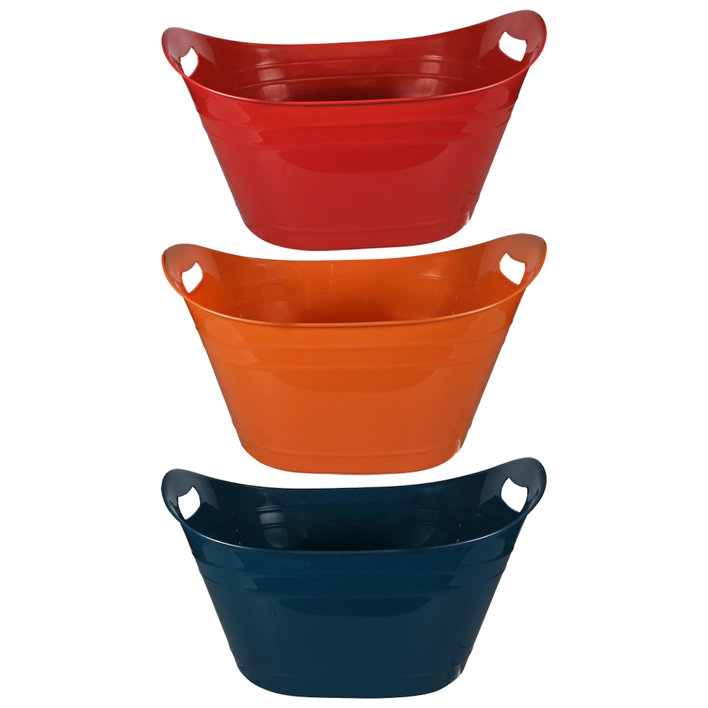 Assortment Details: Oval Contour Plastic Tubs with Handles assorted among navy blue, burnt orange, or rust red colors