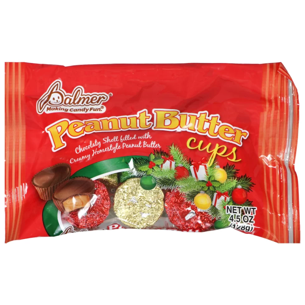 Assortment Details: 4.5-oz. Bags of Palmer® Christmas-Themed Peanut Butter Cups