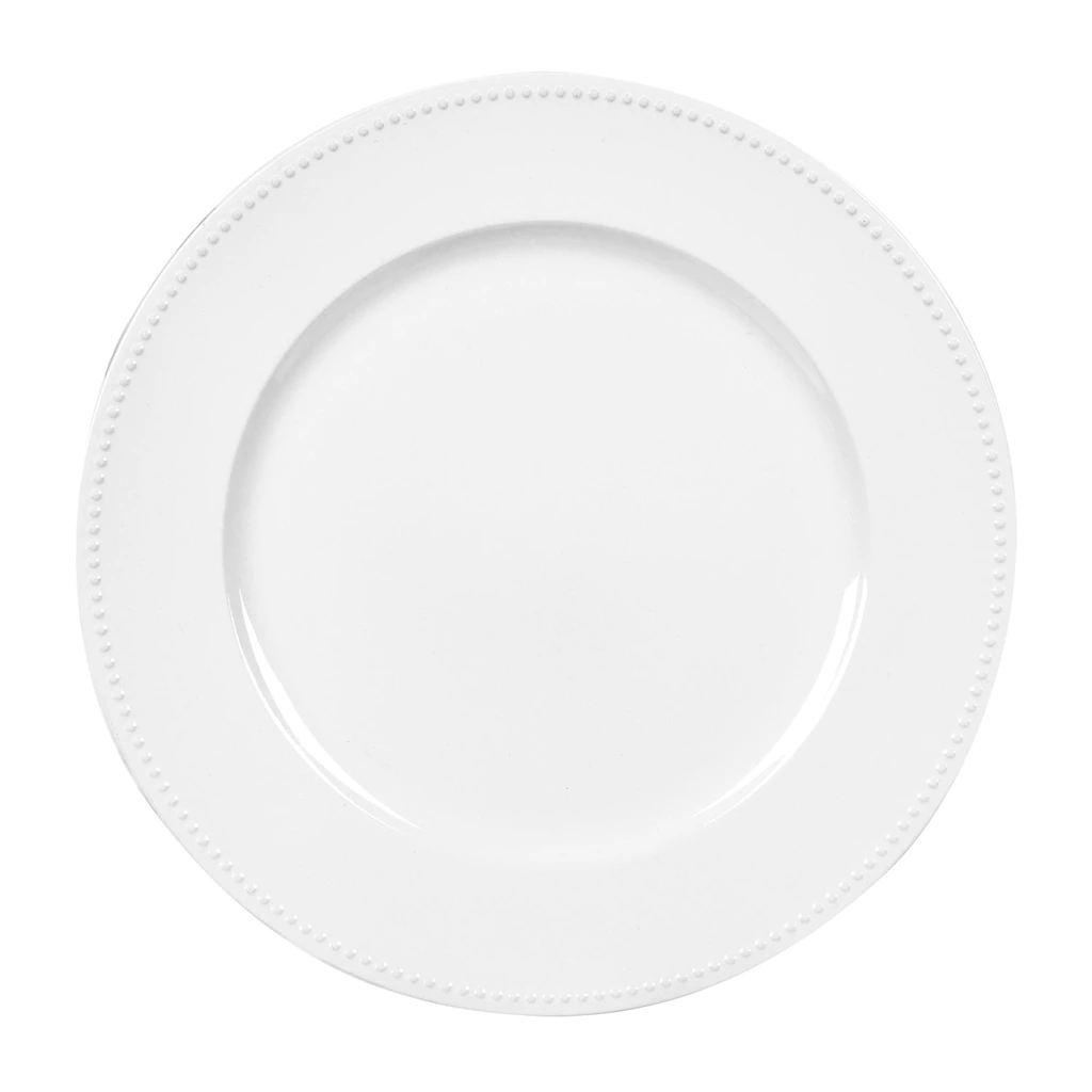 Pearlized White Plastic Charger Plates with Beaded Rims, 13 in.