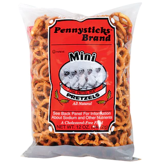 Assortment Details: 12-oz. Bags of Pennysticks® Brand Mini Pretzels