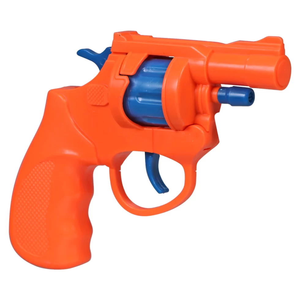 Watch as they run and play secret agent using thiese cap guns to fire in the air. These bright orange toy guns feature a real trigger and hammer action to set off the ring caps which make the “bang” sound. Ring caps not included. Recommended for ages 6+.