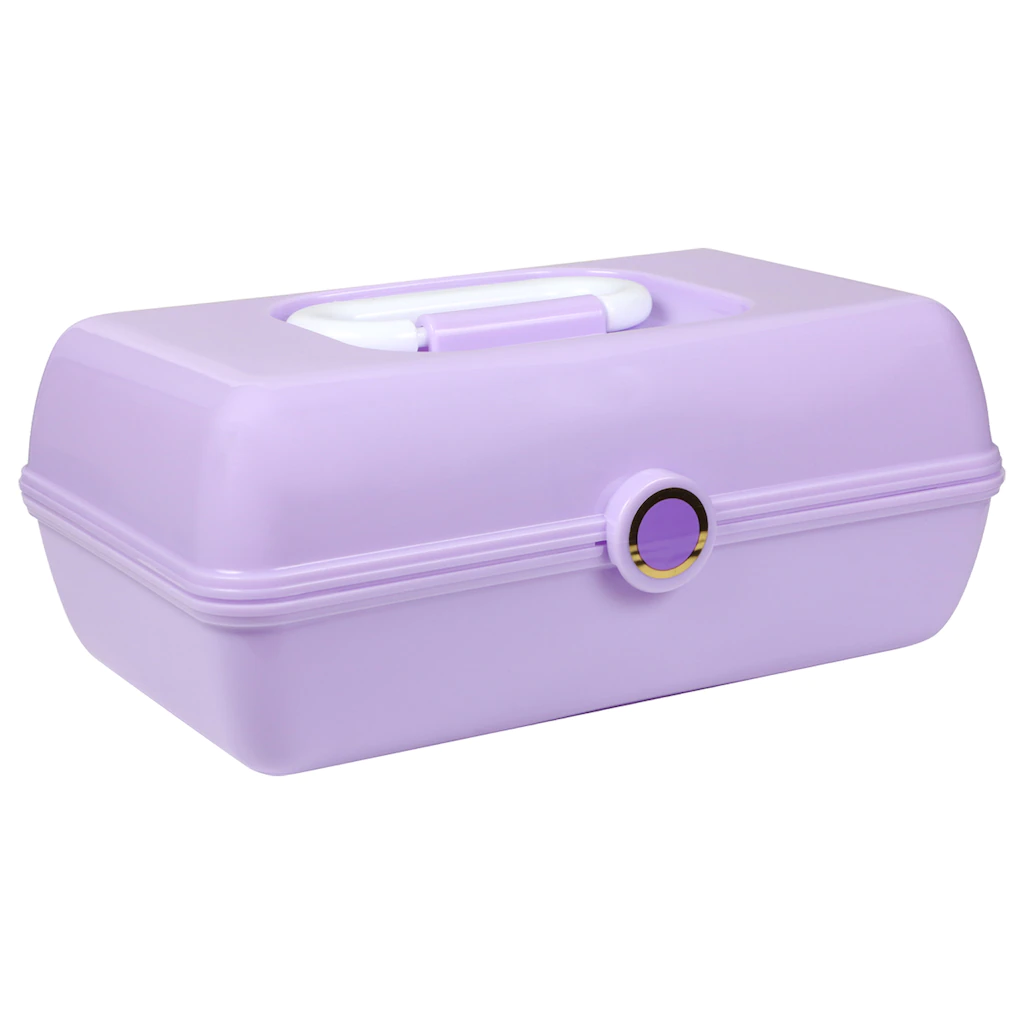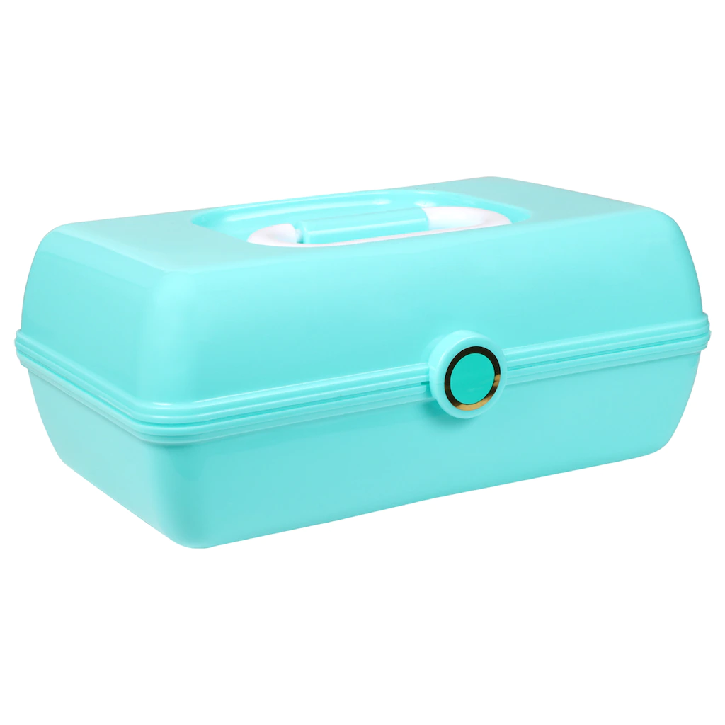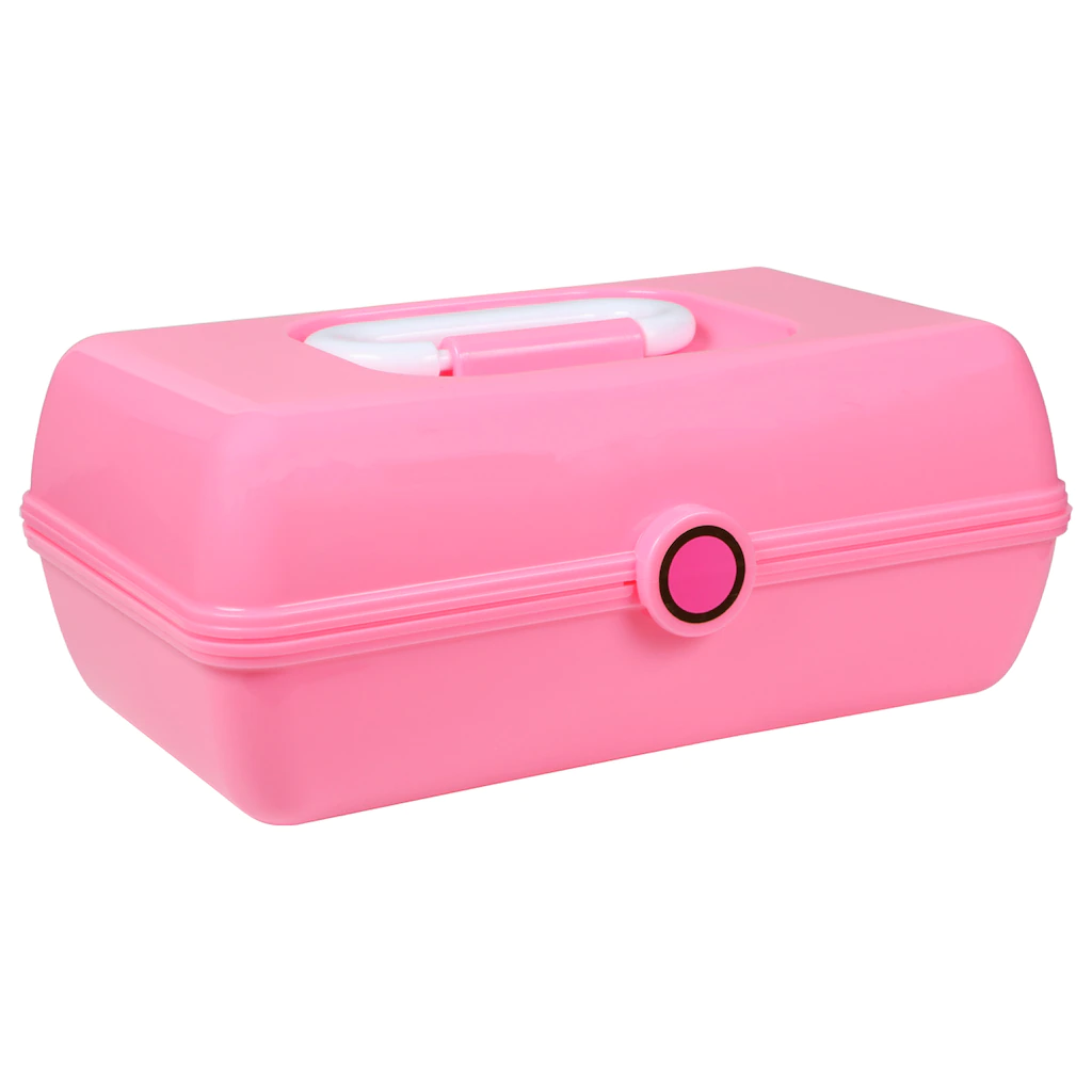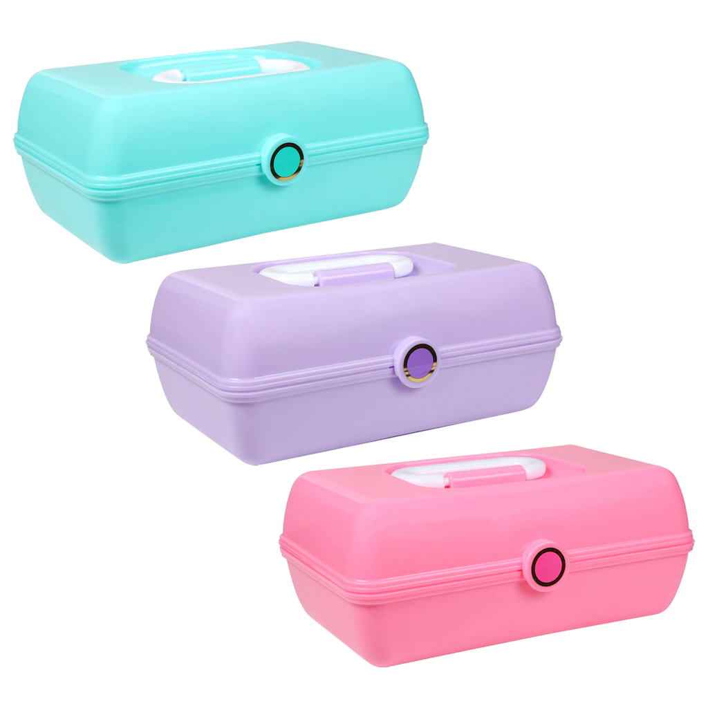 Contain all your small beauty products, jewelry, and little bits and bobs in one safe place. 8.875×5.875×4-in. plastic accessory cases come in 3 assorted colors: aqua blue, lilac, and pink. Every case comes with a carrying handle on the top of the lid that makes carting around your small items and accessories easy and stress free. Great for home use, gift giving, jewelry shops, stage theaters, and more.