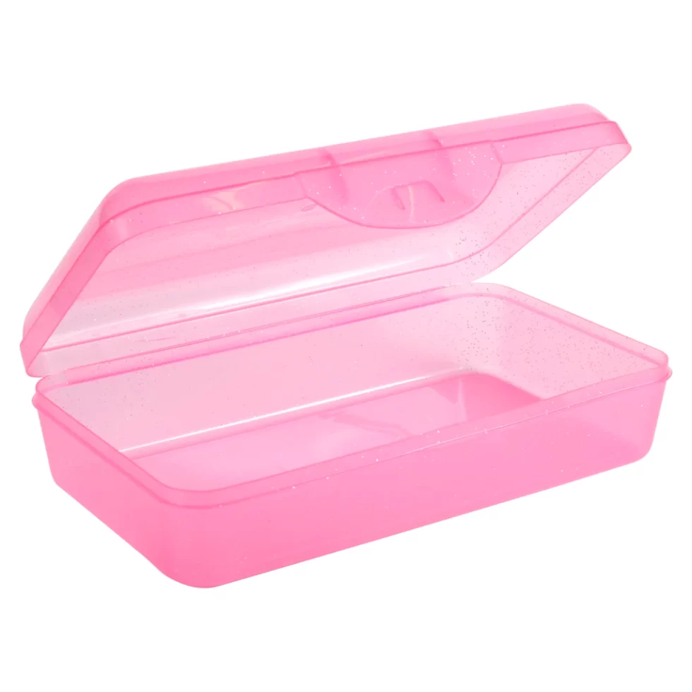 Plastic Glitter Pencil Boxes, 8x5x2.25 in.