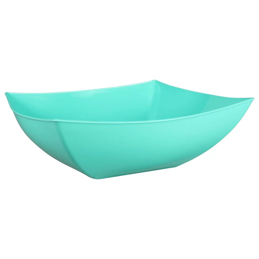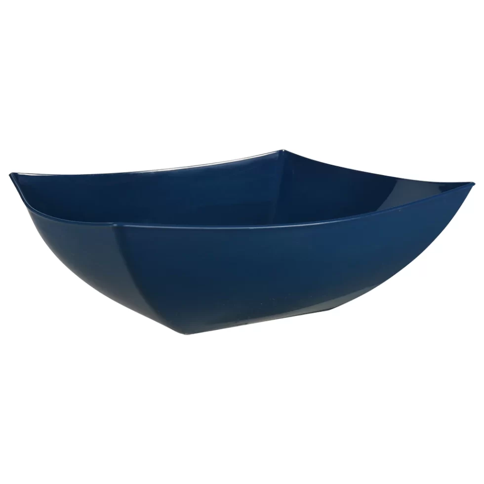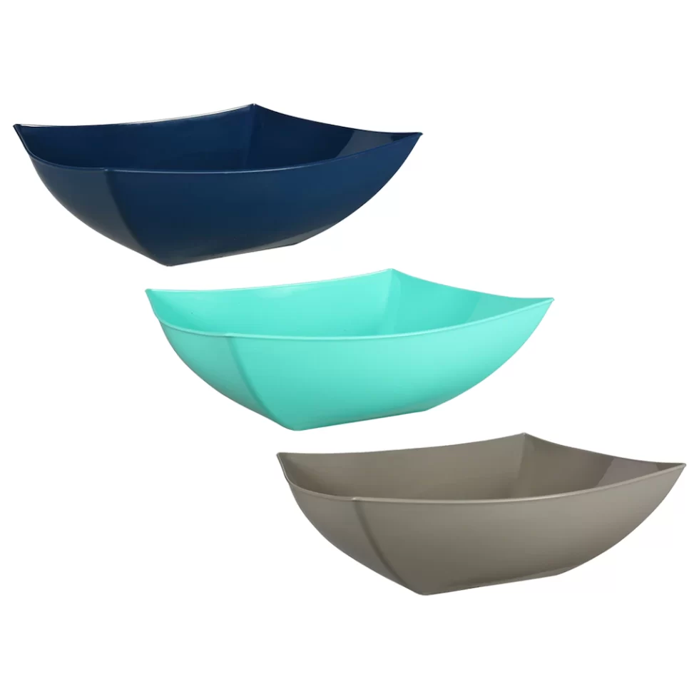 Assortment Details: 11.5×11.5×3.875-in plastic square bowls assorted among navy blue, gray, and aqua blue.