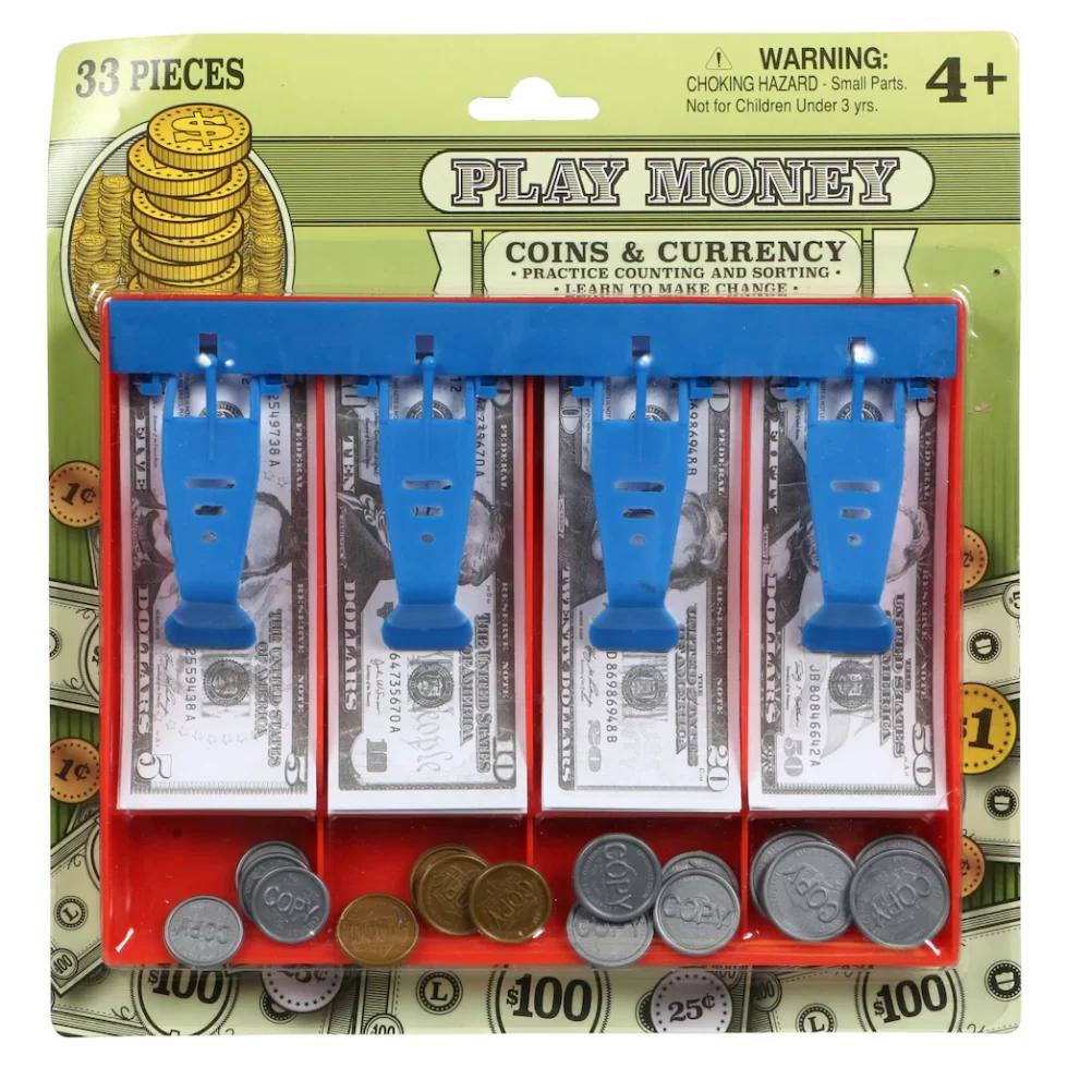 They think they are playing because they’re having a great time, but they are learning the value of money and how to add and subtract. It will be our secret. These play money sets provide hours of fun playtime as they learn how to buy and sell and understand the value of a dollar. Each set includes 16 paper bills, 16 coins, a money clip, and a plastic cash drawer. Ages 4+.