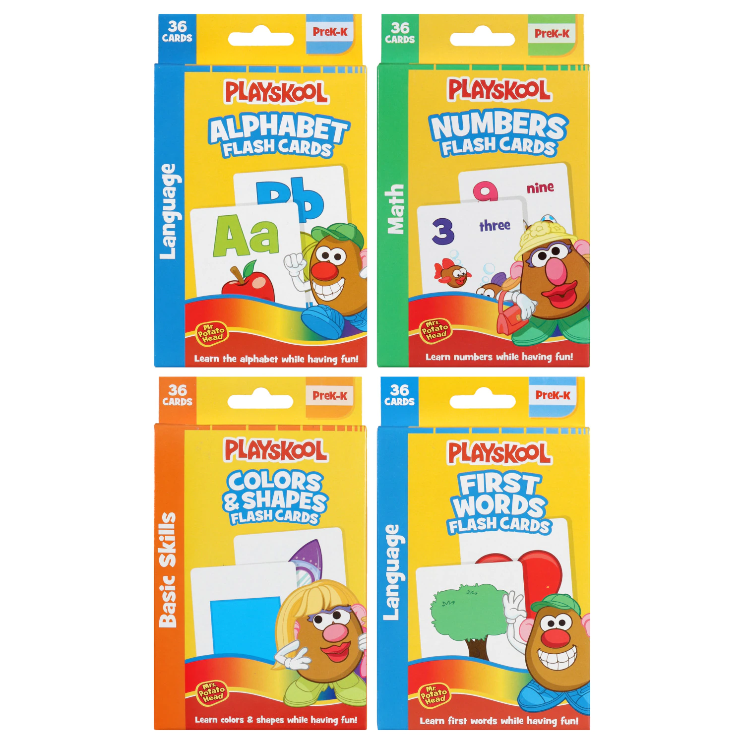 Learn the alphabet, numbers, colors and shapes, and first words with Mr. Potato Head! These 36-ct. boxes of Playskool® Pre-K Flash Cards make learning fun — ideal for teaching language, math, and basic skills in preschool classrooms, daycare centers, and quizzing at home. Ages 3+.