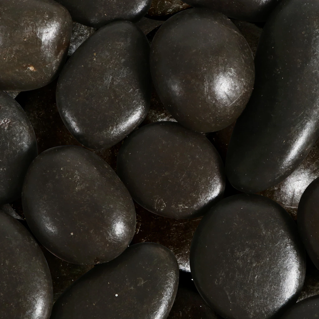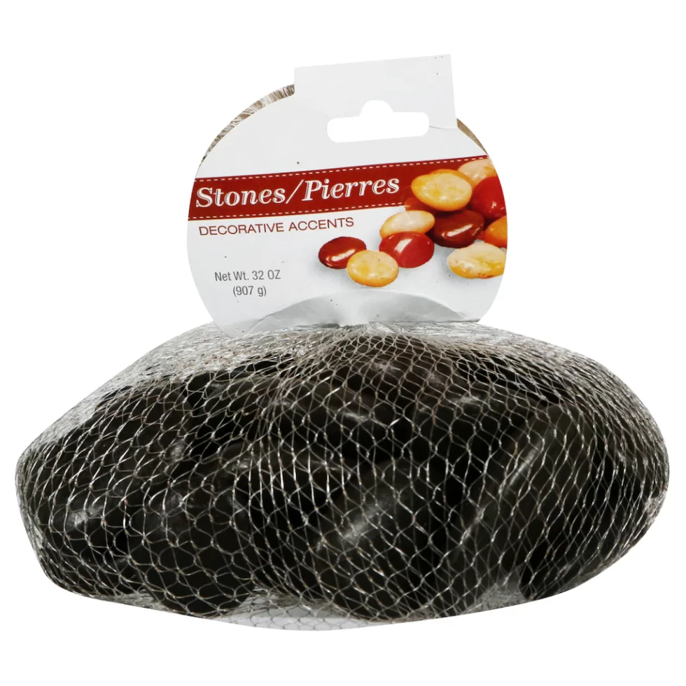Assortment Details: 32-oz. Bags of Polished Black River Rocks
